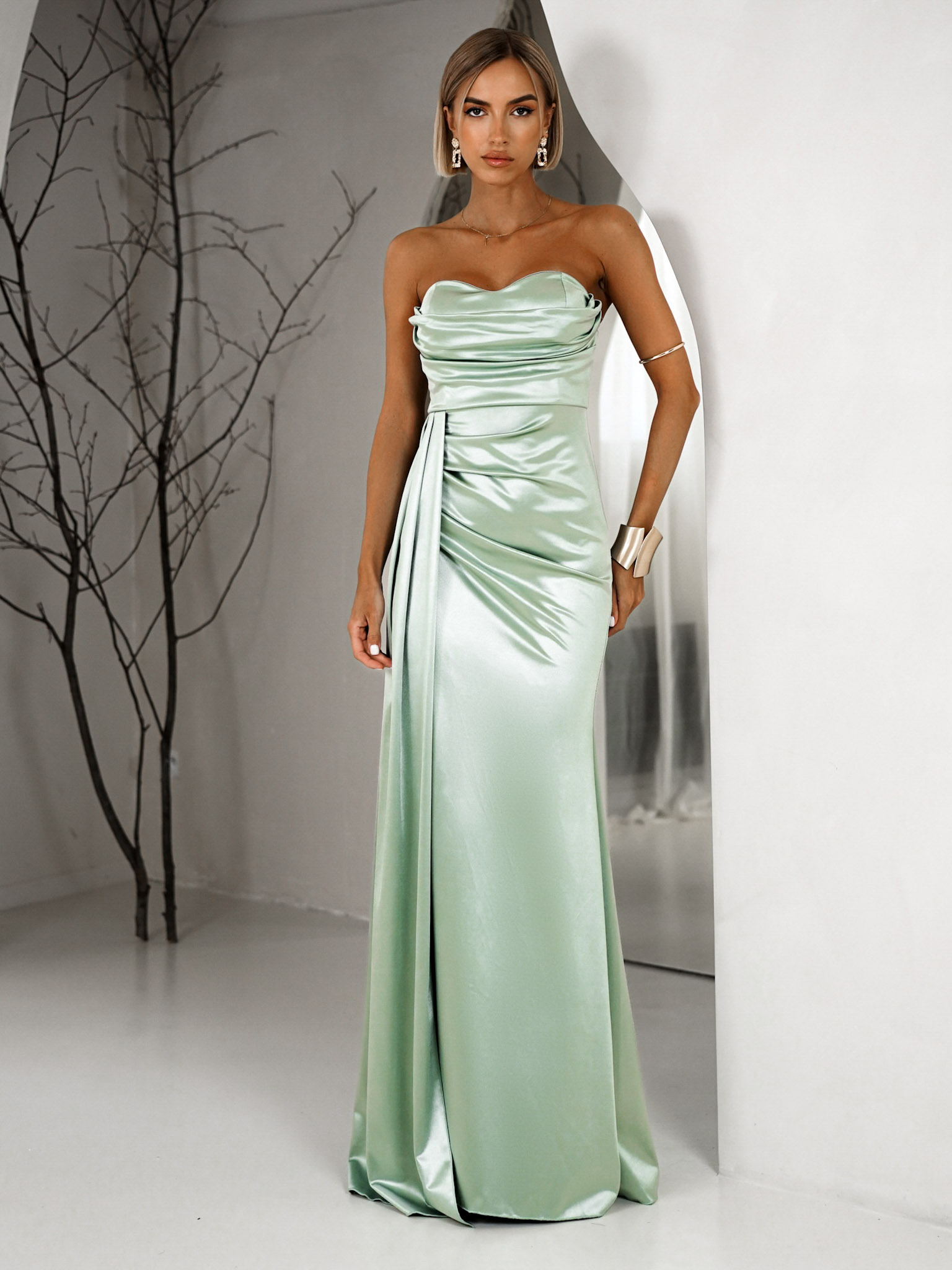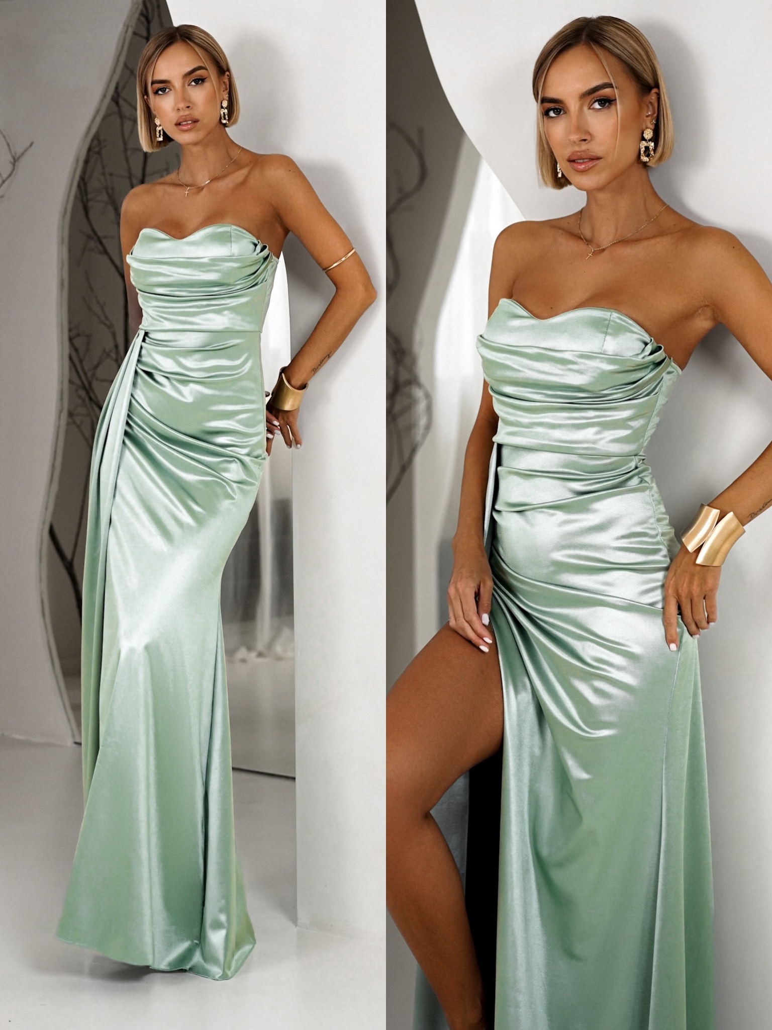Světle zelené dlouhé společenské šaty ALITAN Velikost: ONESIZE