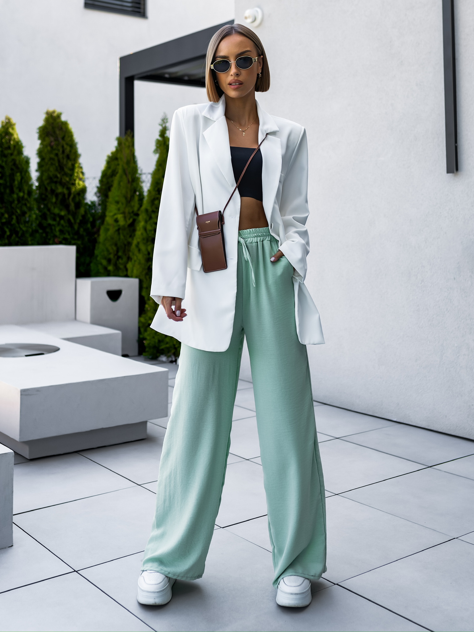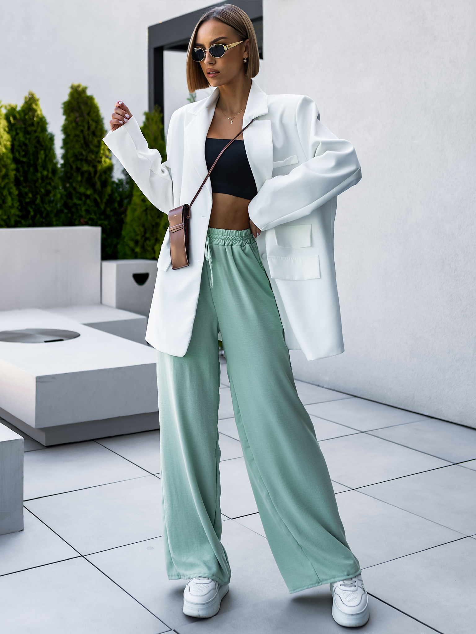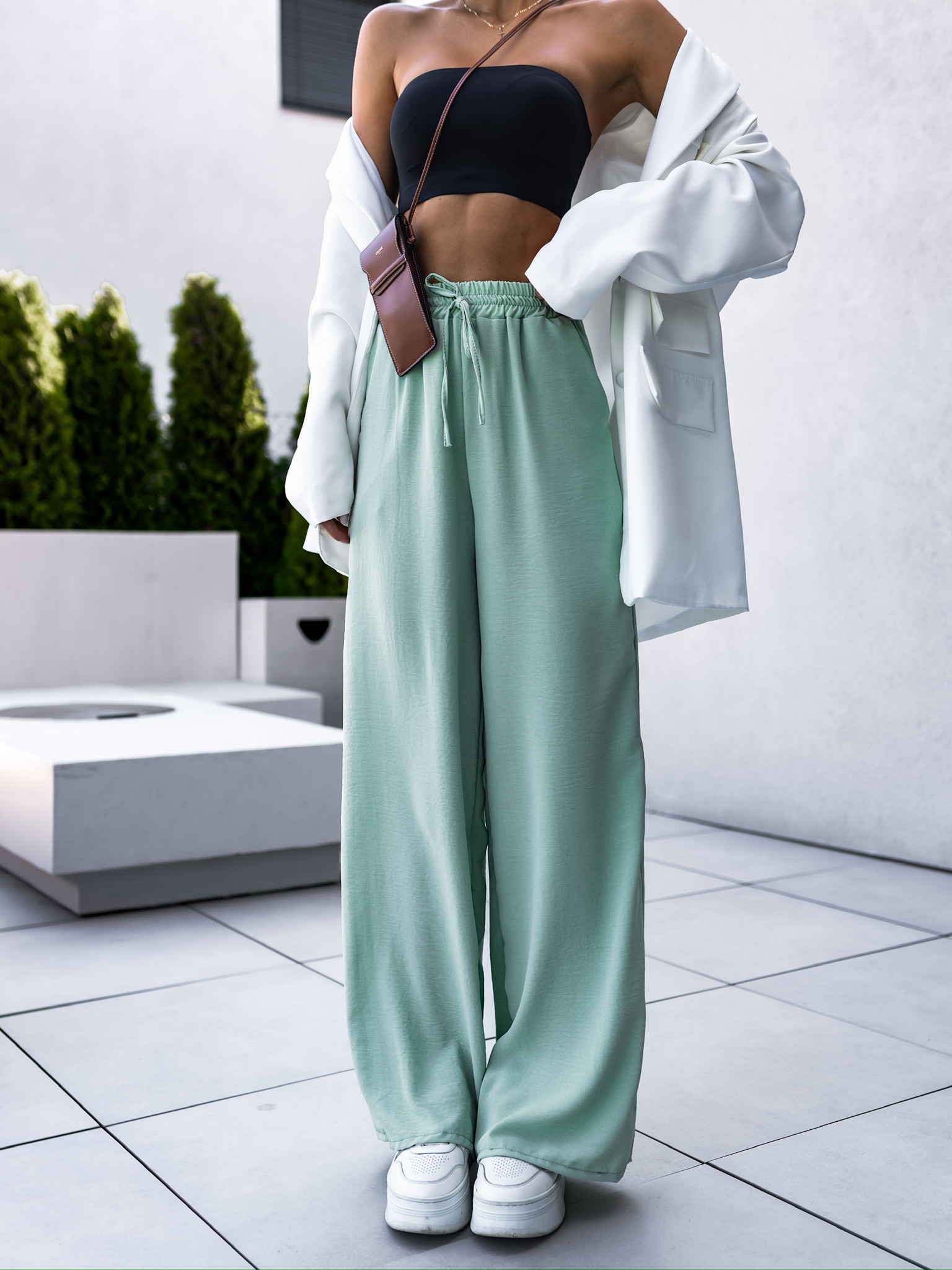 Světle zelené letní kalhoty CORAL s rozšířenými nohavicemi Velikost: S/M
