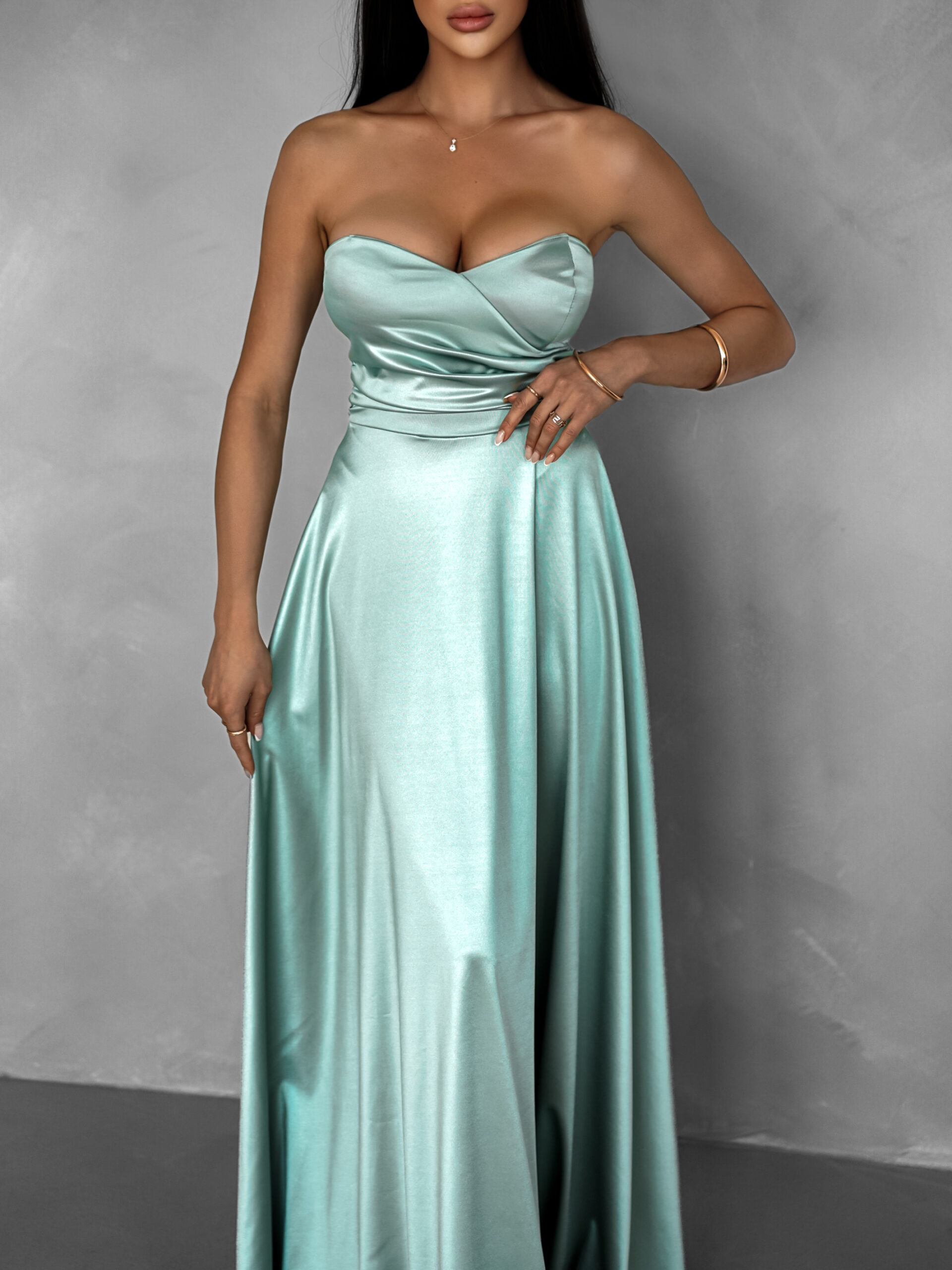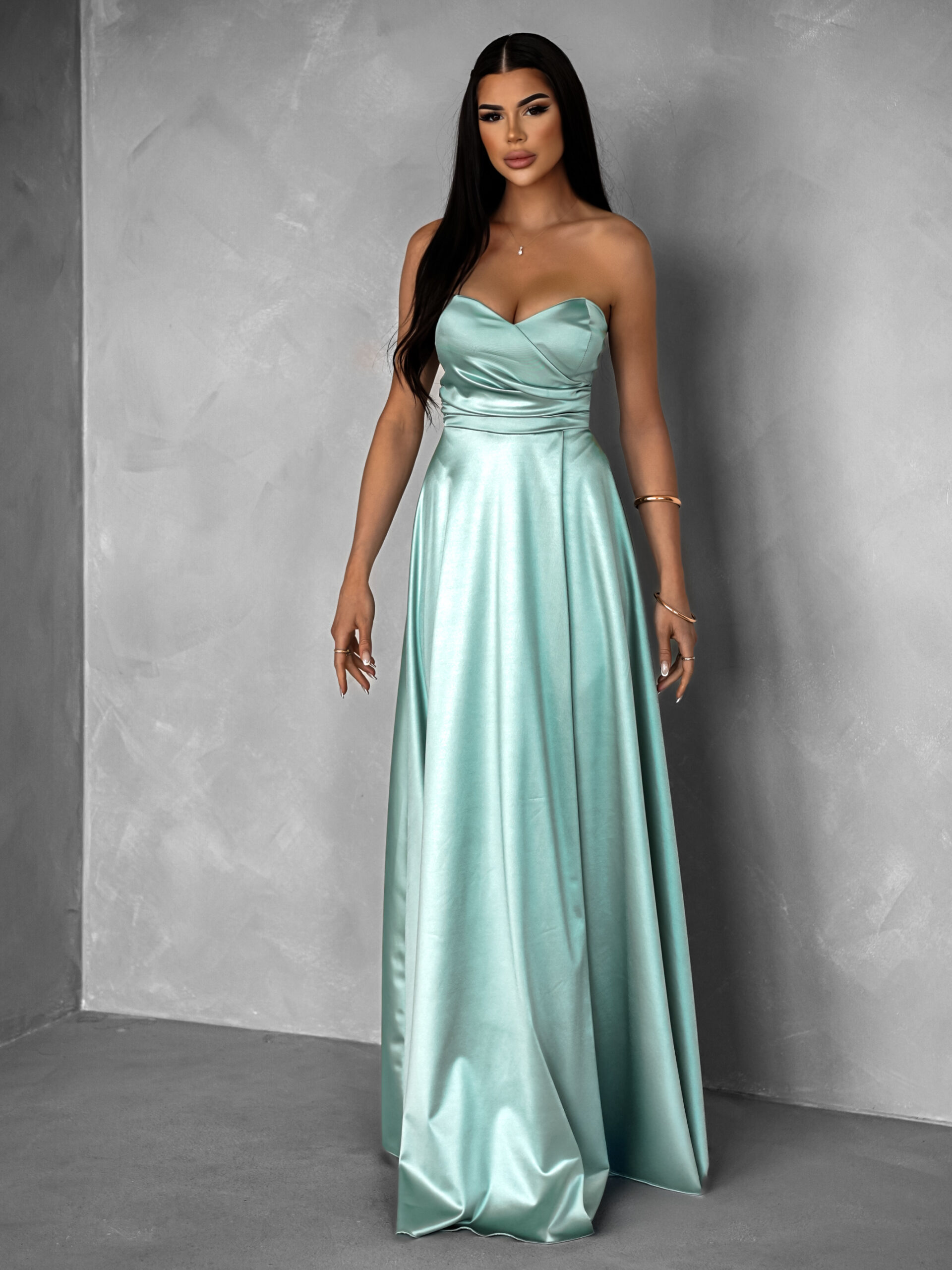 Světle zelené saténové dlouhé šaty SYCHAEUS bez ramínek Velikost: ONESIZE