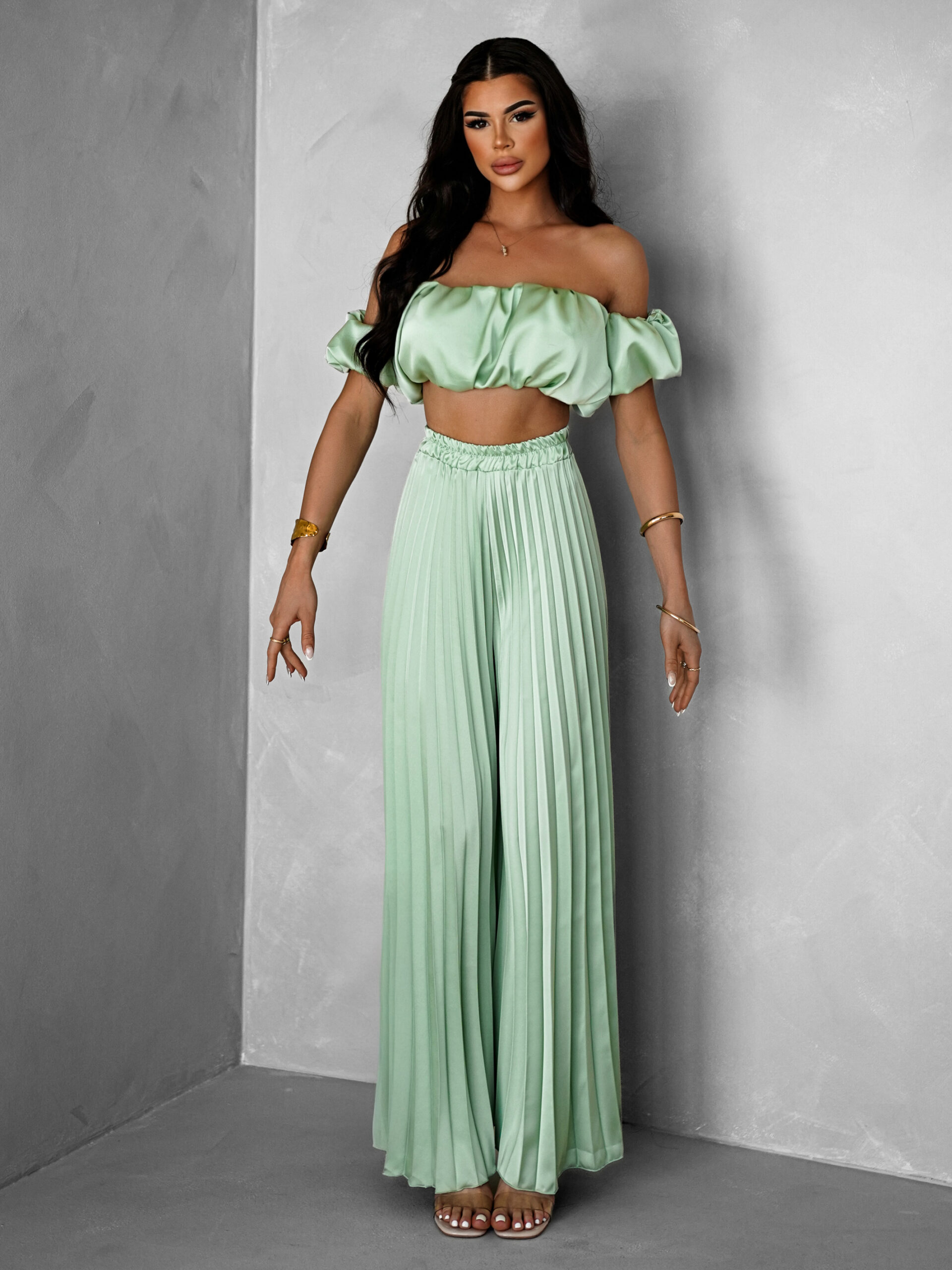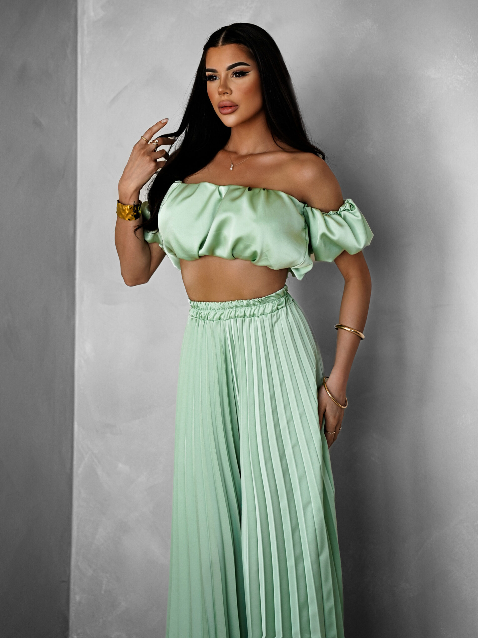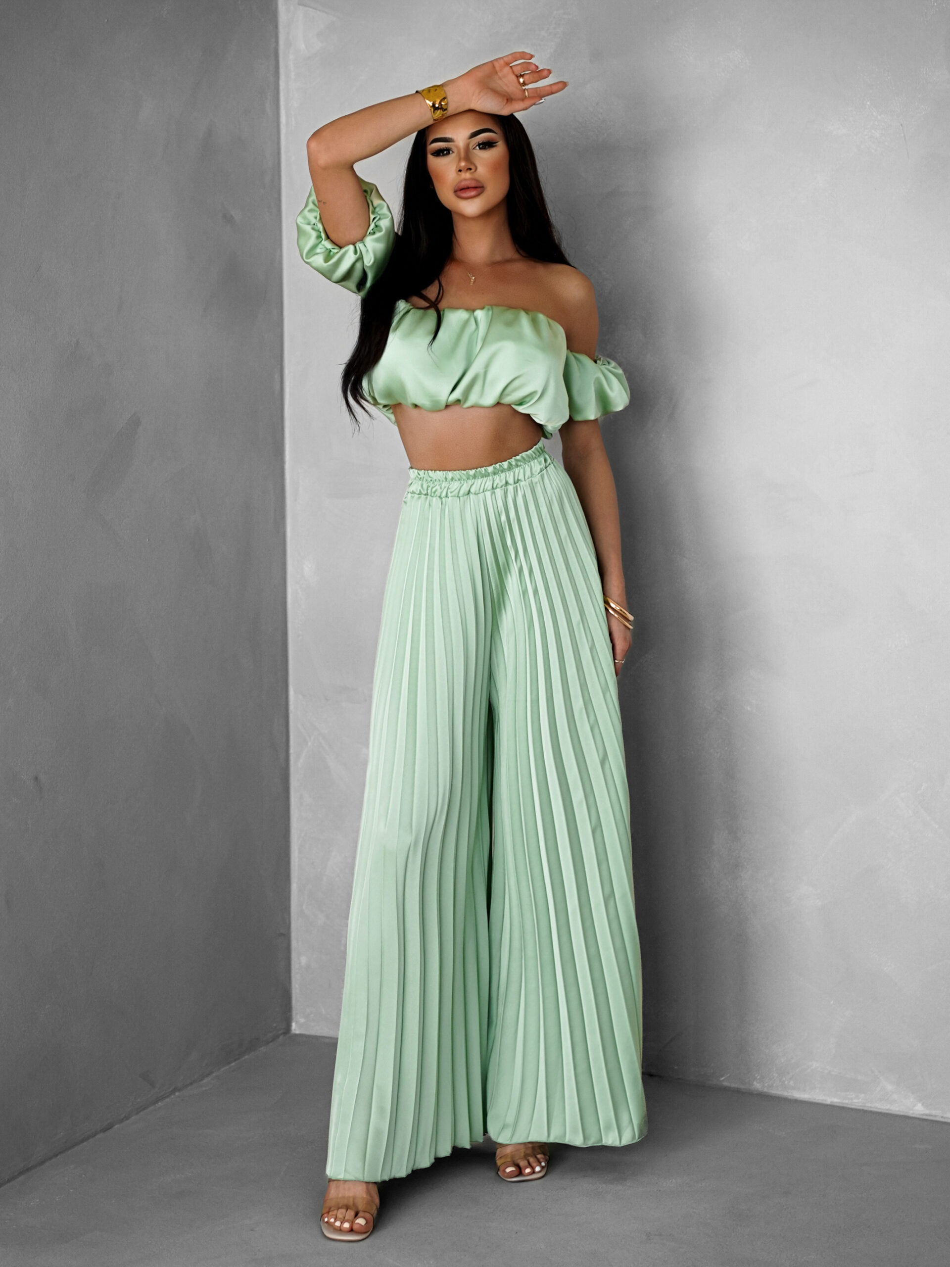 Světle zelený letní saténový kalhotový komplet VISEU Velikost: ONESIZE
