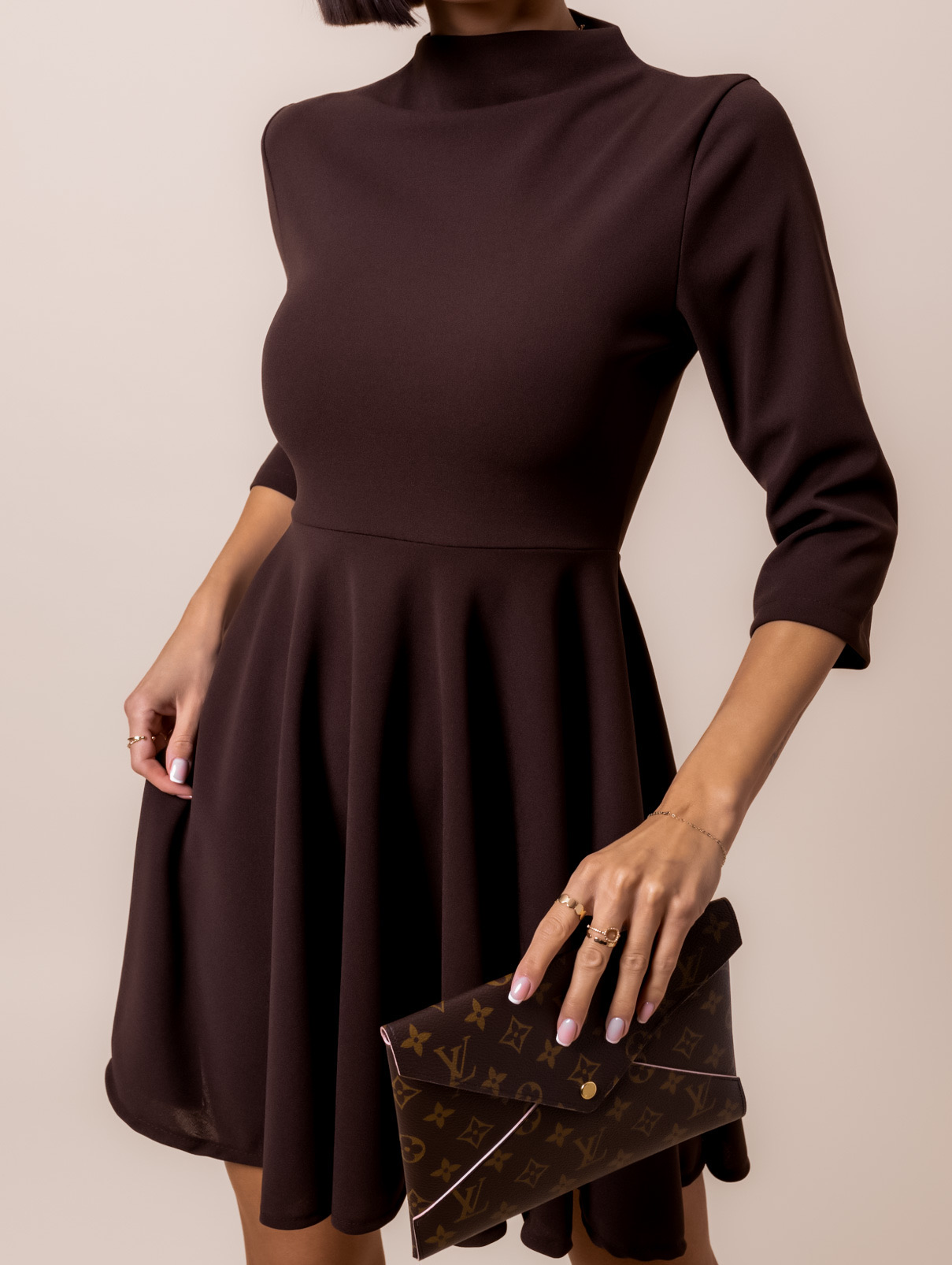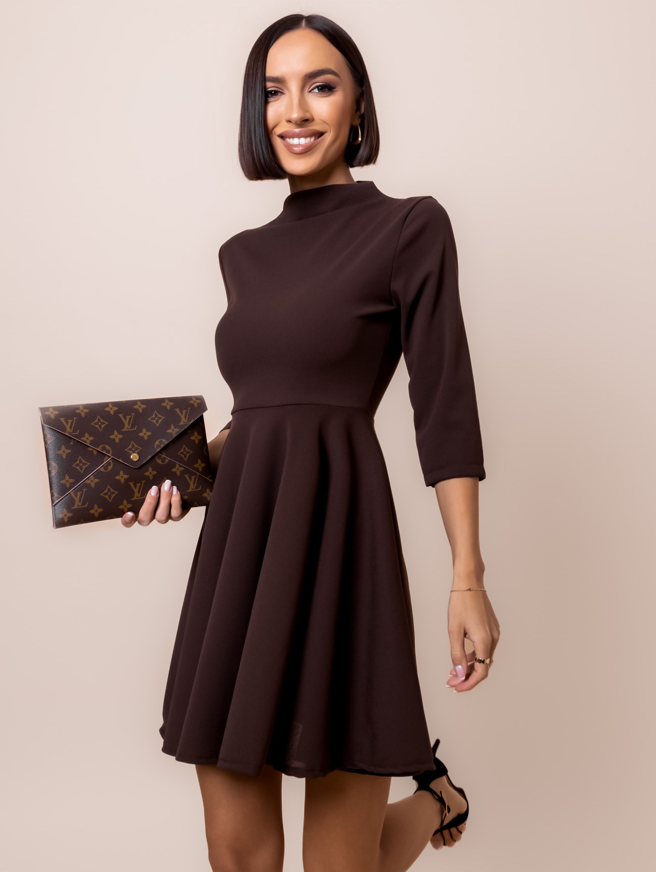 Tmavě hnědé elegantní šaty GROUND s dlouhým rukávem Velikost: ONESIZE
