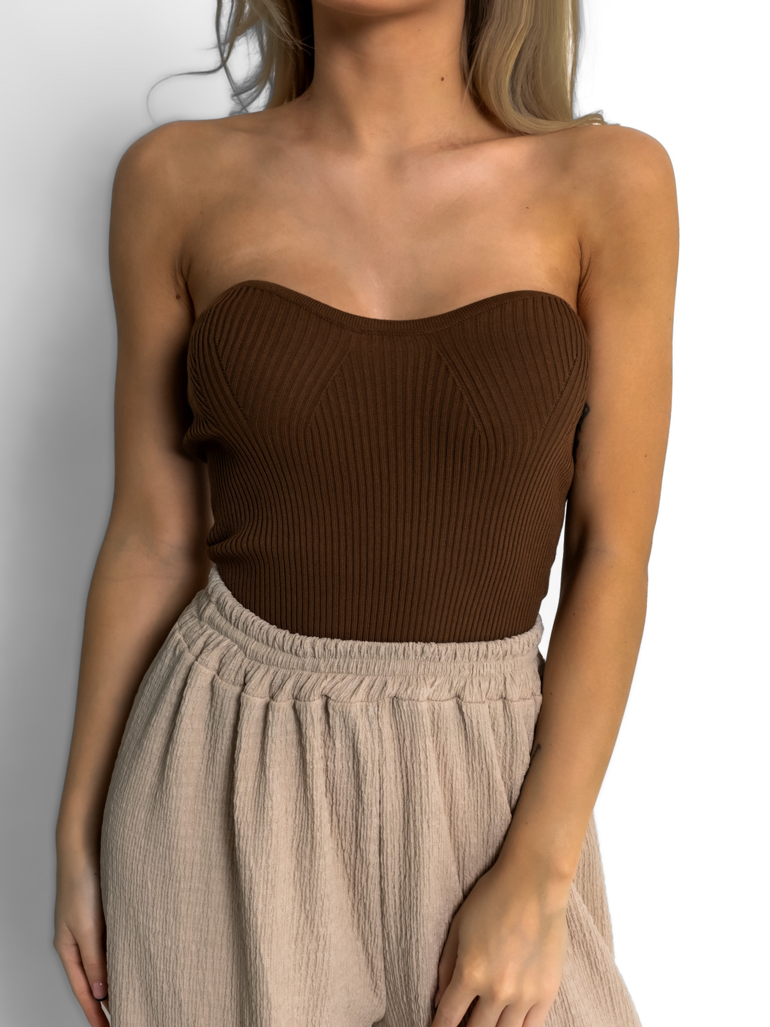 Tmavě hnědý basic žebrovaný top KARPANY Velikost: M/L