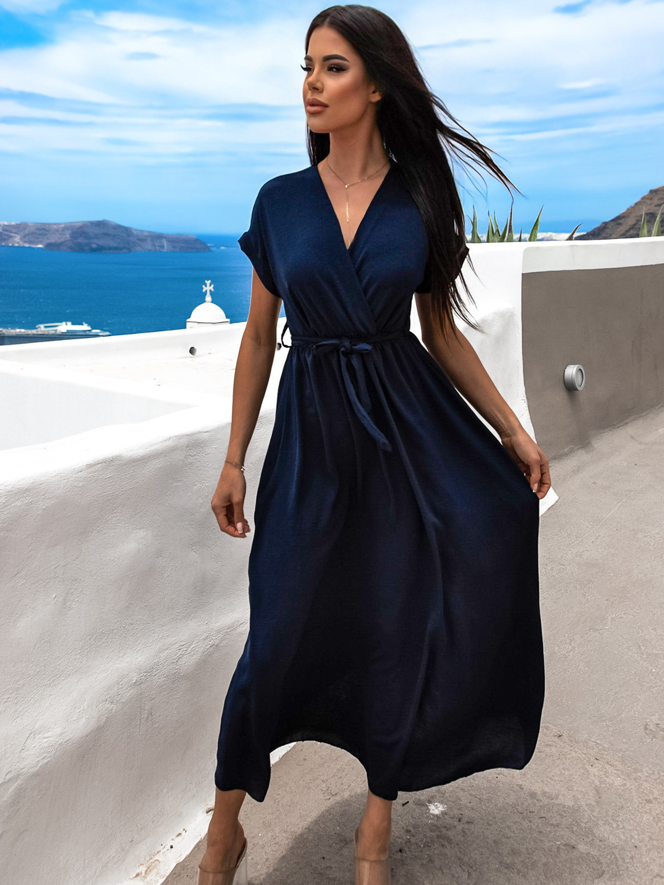 Tmavě modré delší elegantní šaty FEYLING se zavazováním