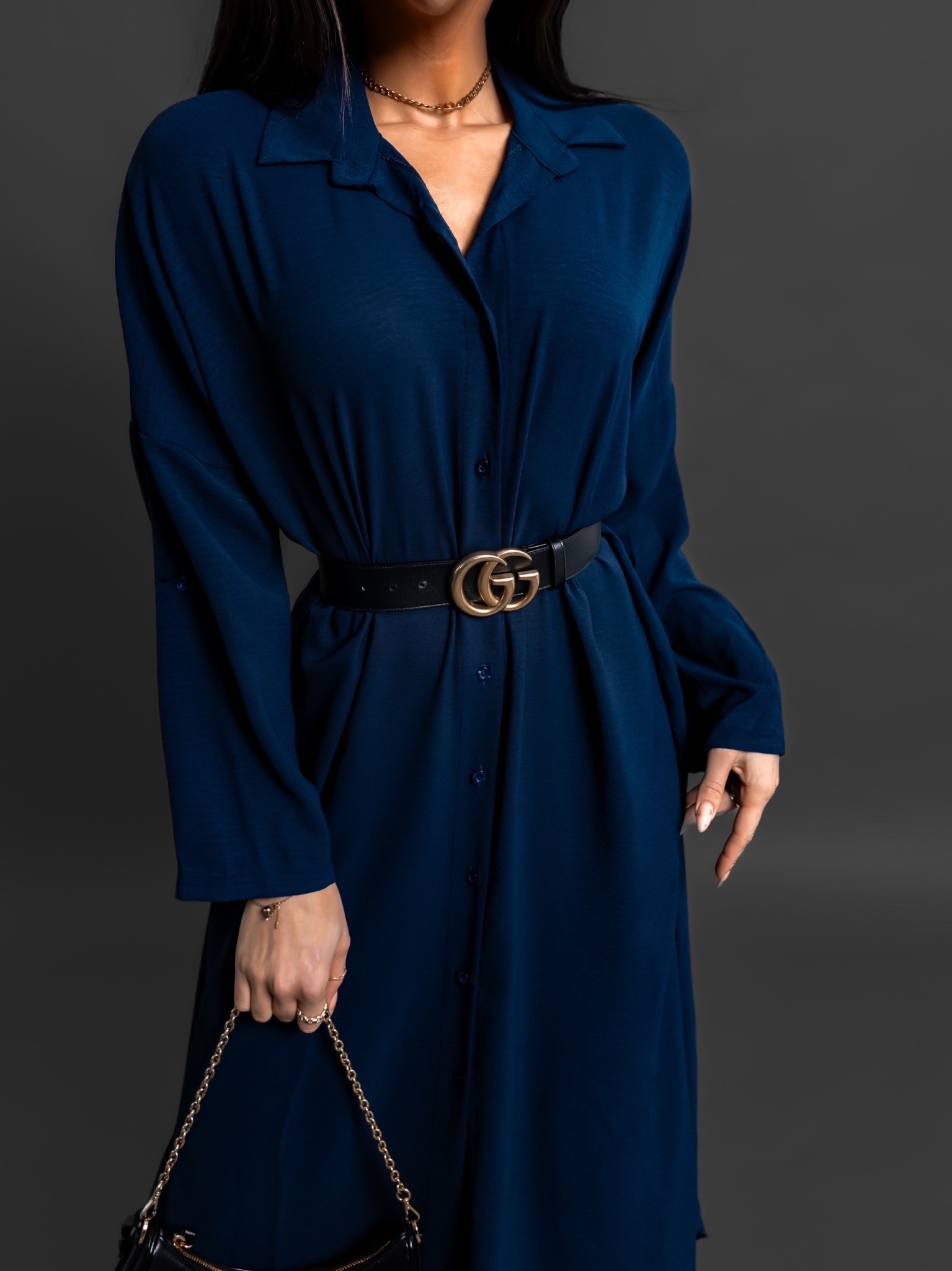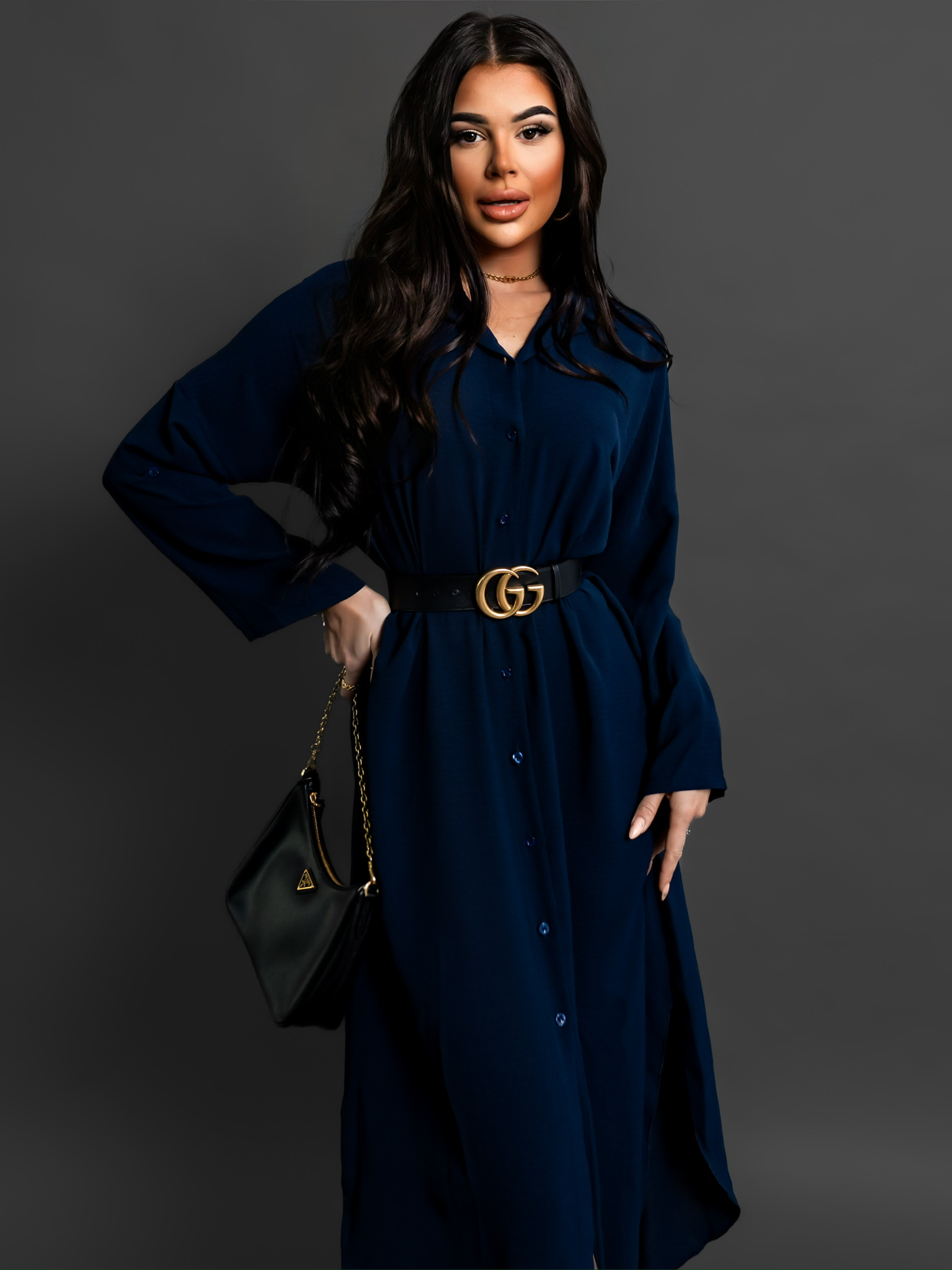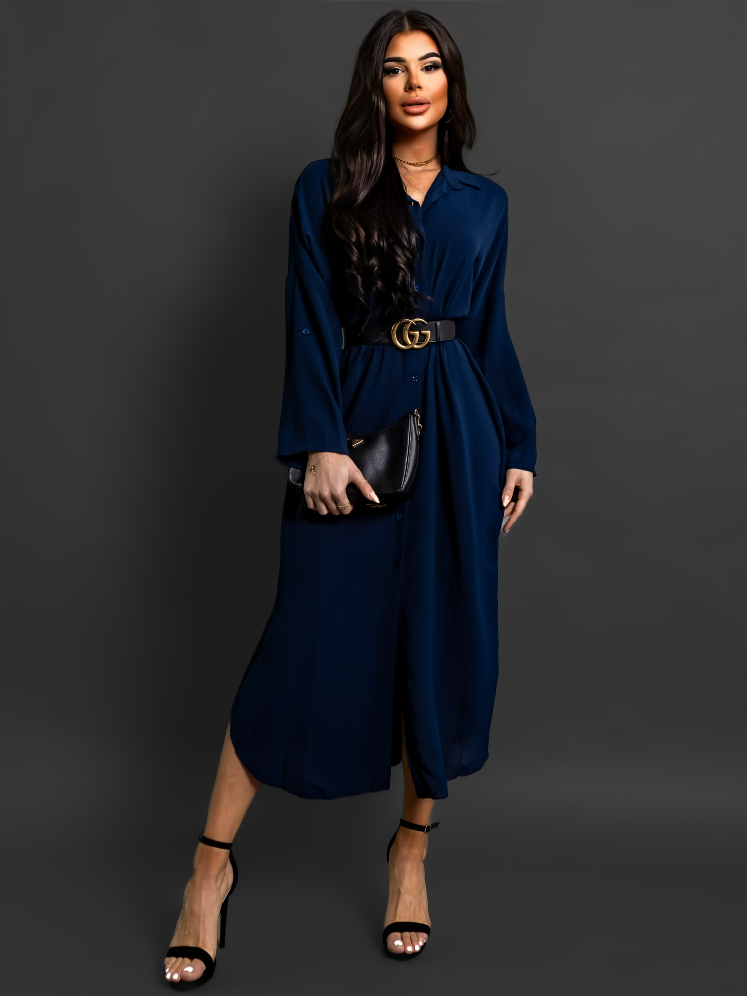 Tmavě modré dlouhé košilové šaty NESSY Velikost: ONESIZE