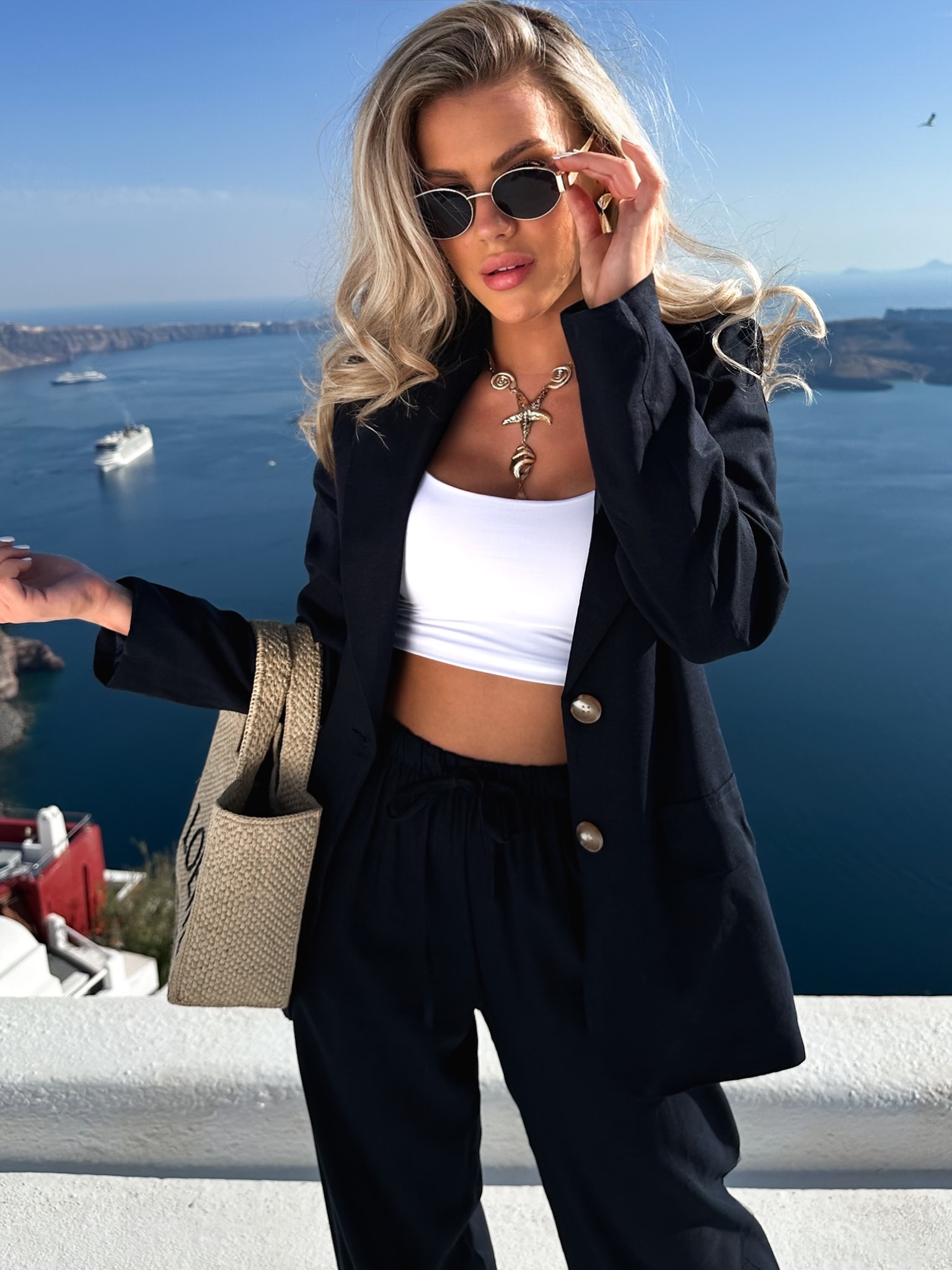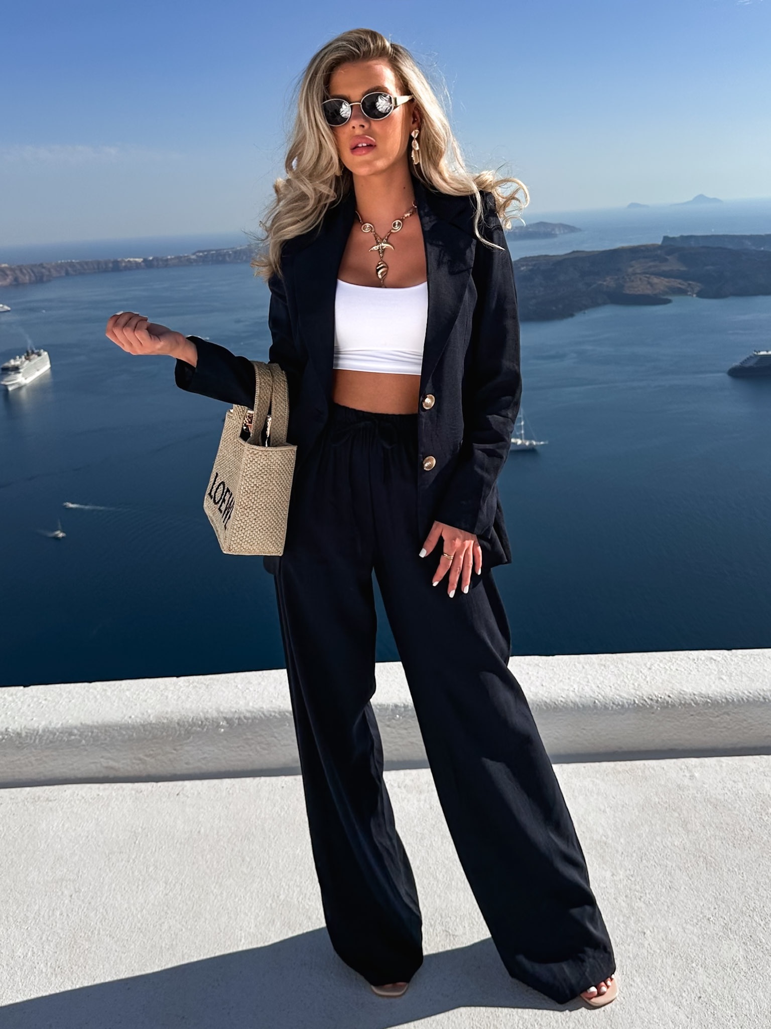 Tmavě modré letní lněné sako STTELOW Velikost: ONESIZE