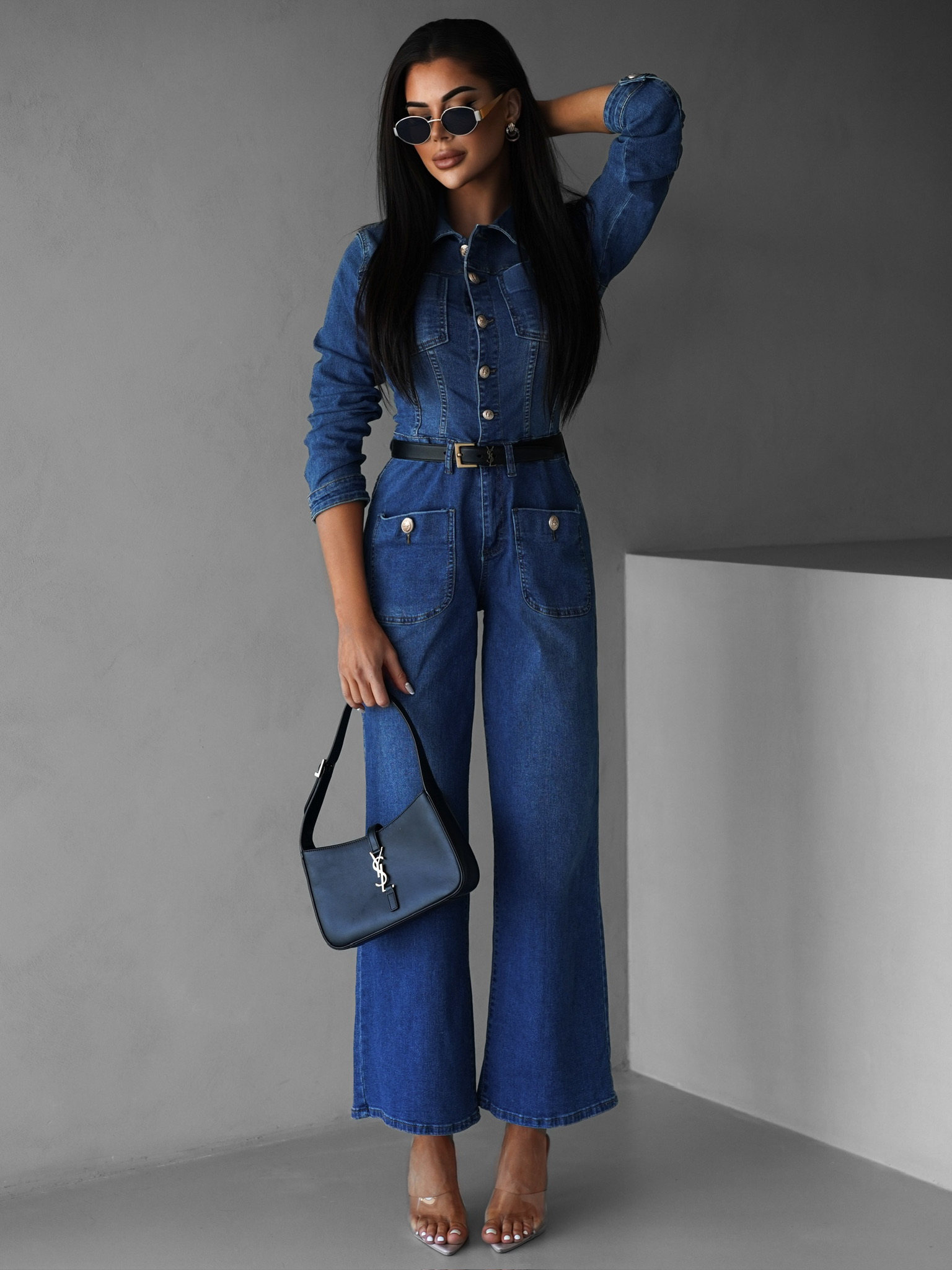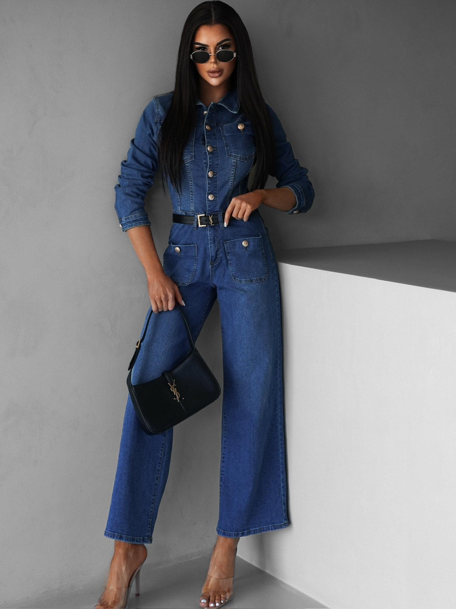 Tmavě modrý džínový dlouhý overal VARNOT s dlouhým rukávem Velikost: S