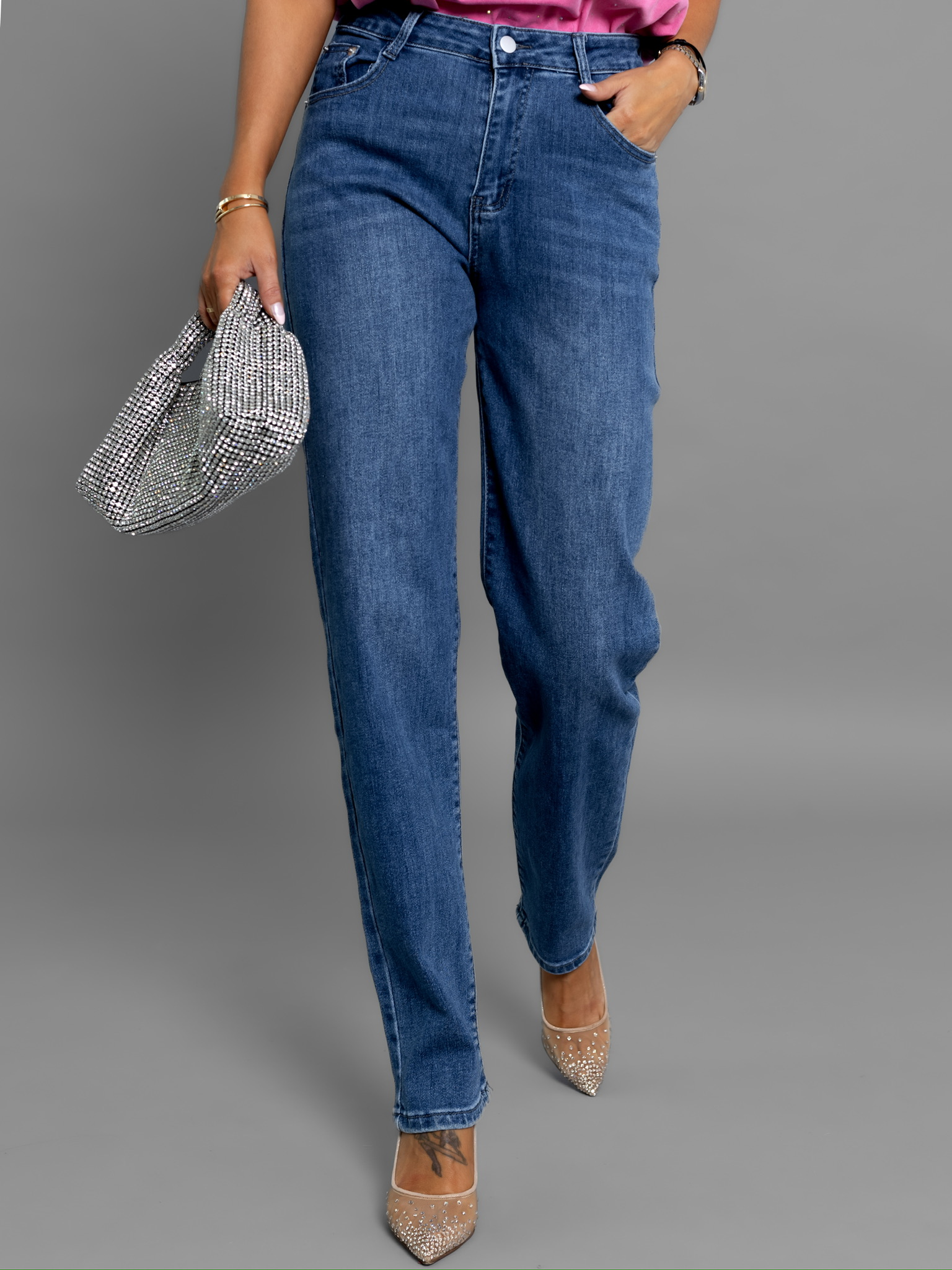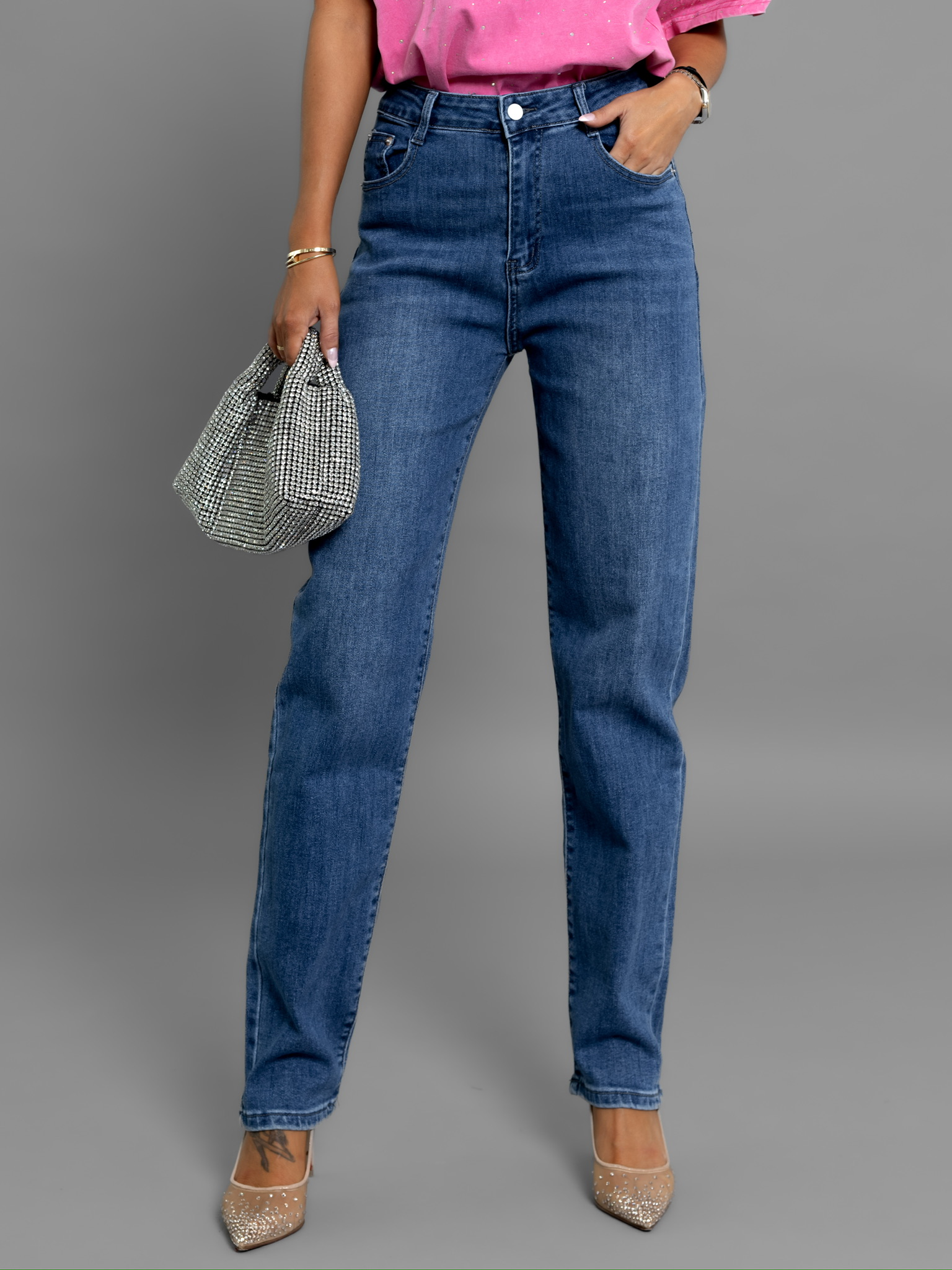 Tmavé mom jeans džíny PUHALA Velikost: XS