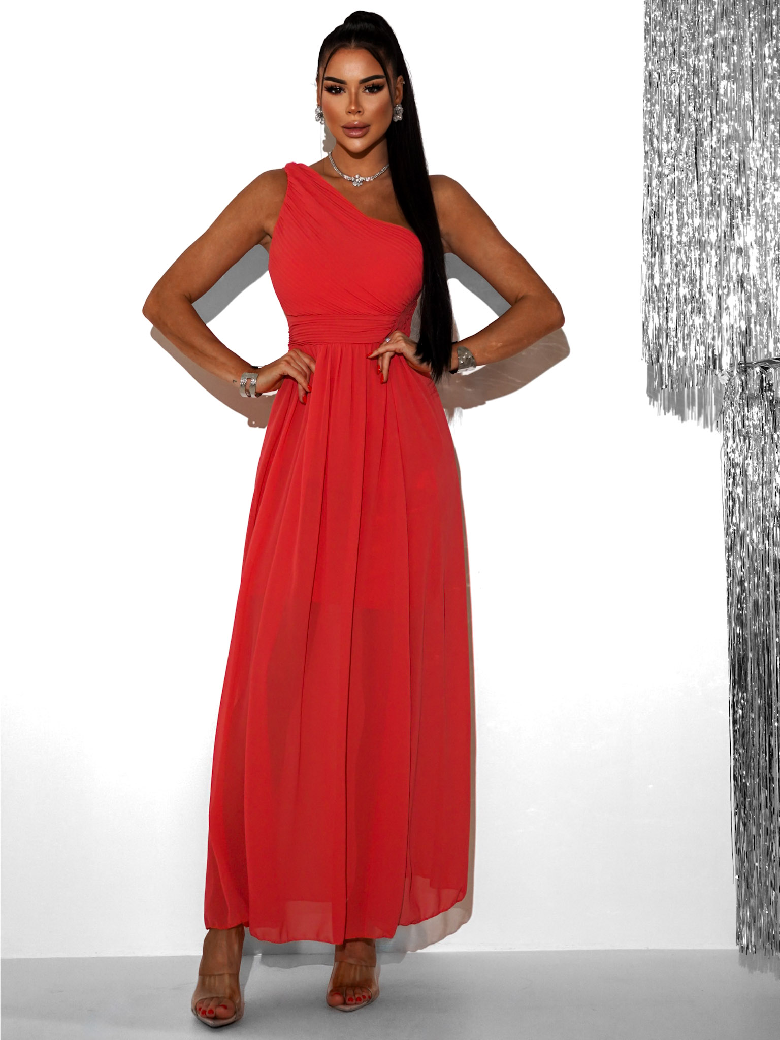 Tmavě růžové elegantní dlouhé šaty FLOAT Velikost: ONESIZE - Obrázek 2