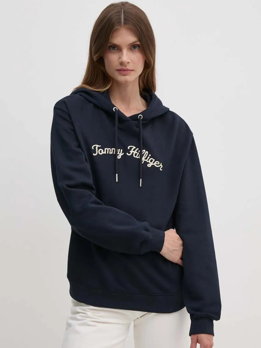 dámská tmavě modrá mikina od Tommy Hilfiger.Materiál:100% bavlnaStřih:Relaxed Fit