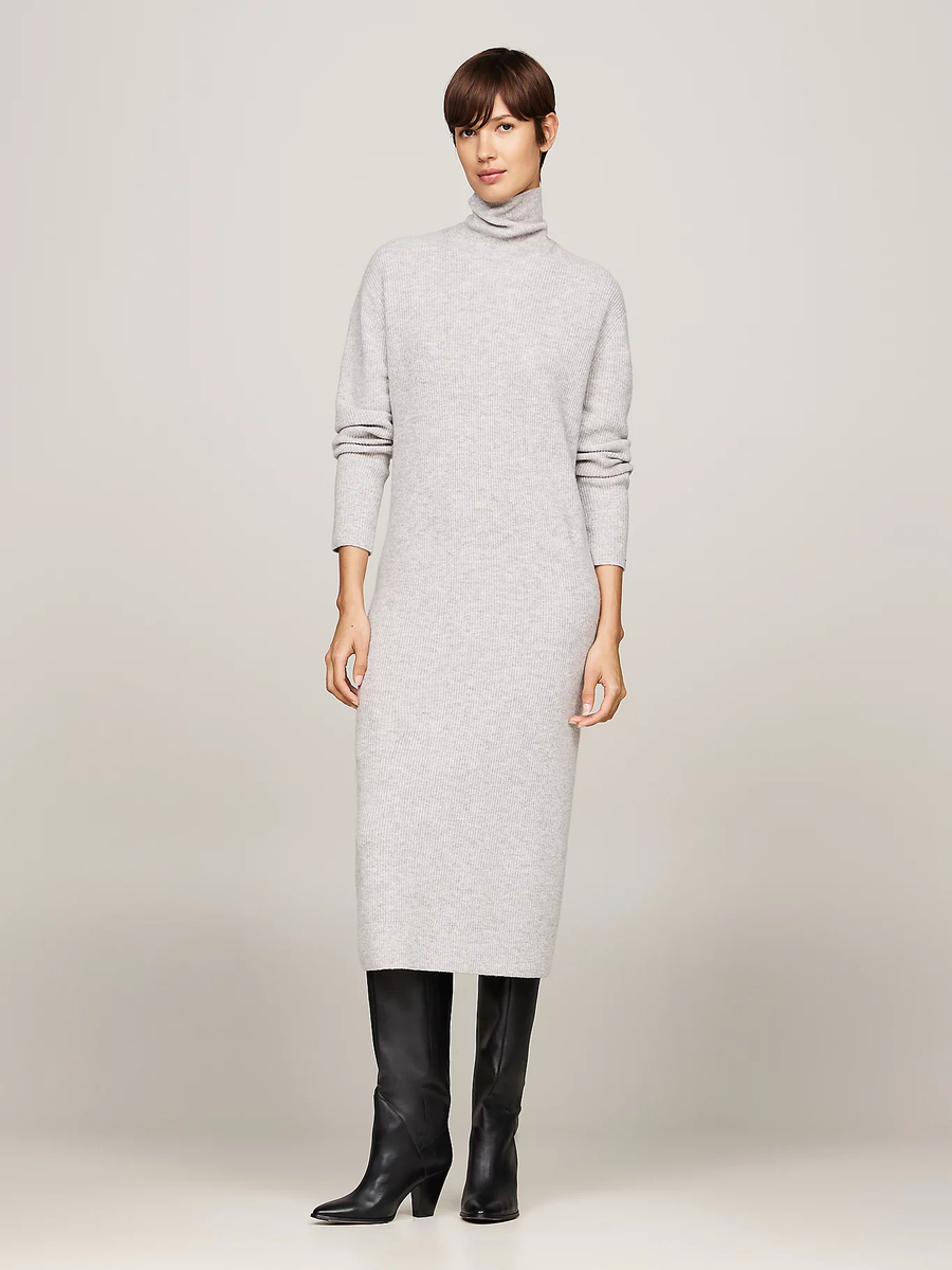 dámské šedé svetrové šaty s kašmírem od Tommy Hilfiger.Materiál:90% vlna10% kašmírStřih:Relaxed fit