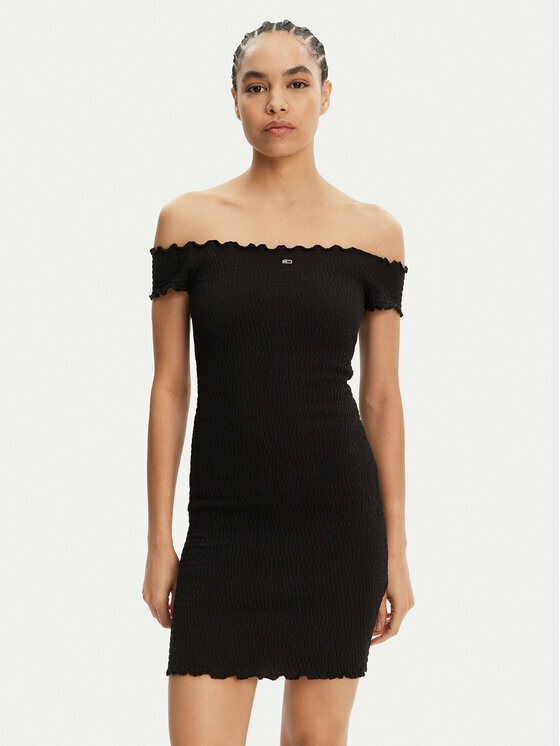 dámské černé šaty Tommy Jeans.Materiál:90% bavlna8% polyester2% elastanStřih:Slim fit