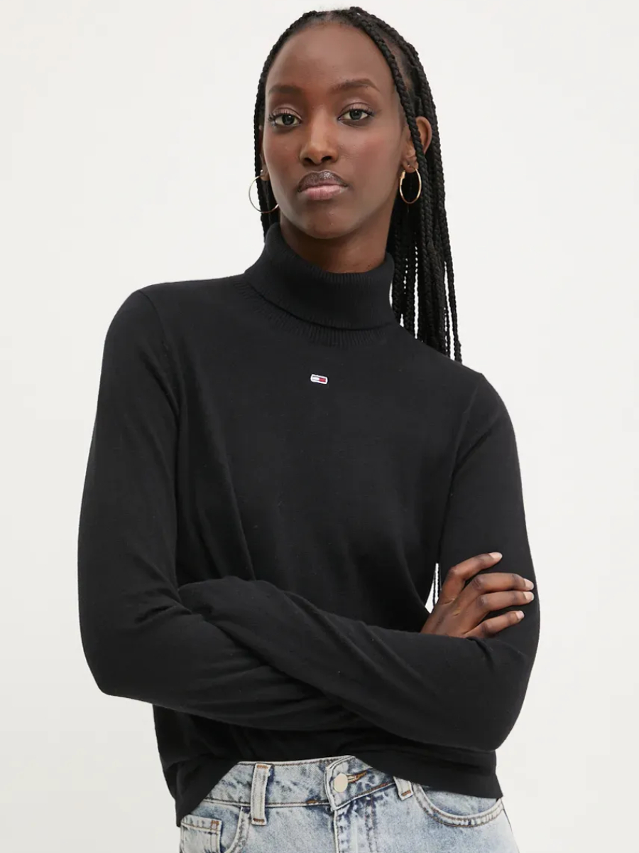 dámský černý rolák od Tommy Jeans.Materiál:53% bavlna40% viskóza7% polyamidStřih:Regular Fit