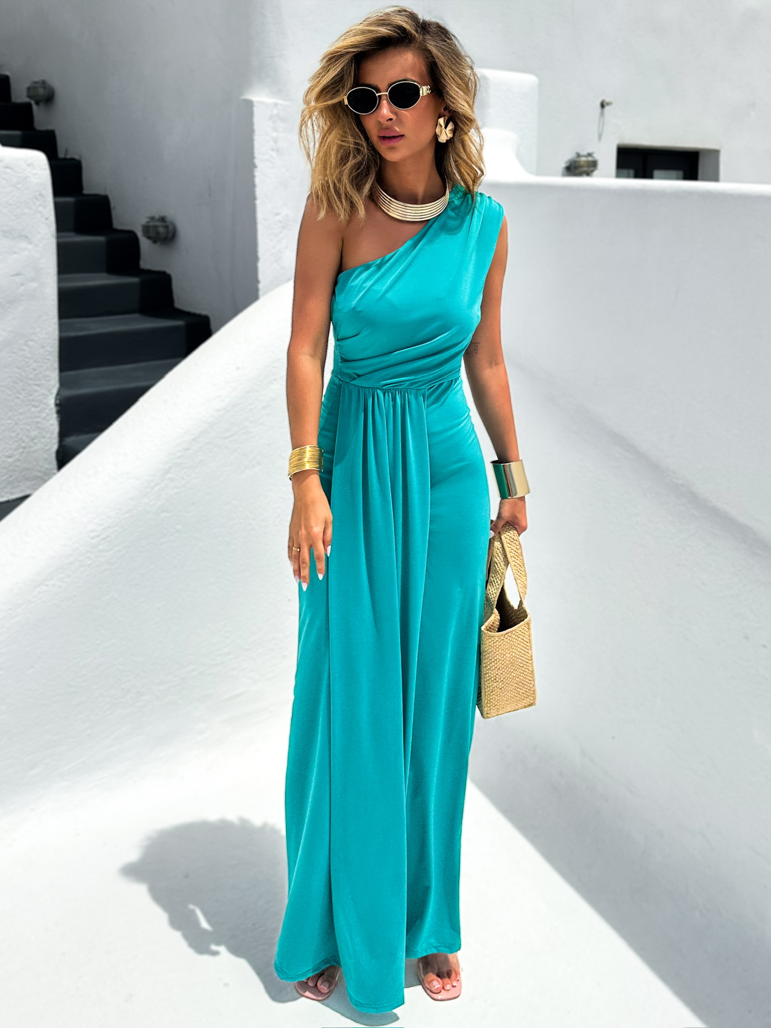 Tyrkysové elegantní asymetrické šaty DIETER Velikost: ONESIZE