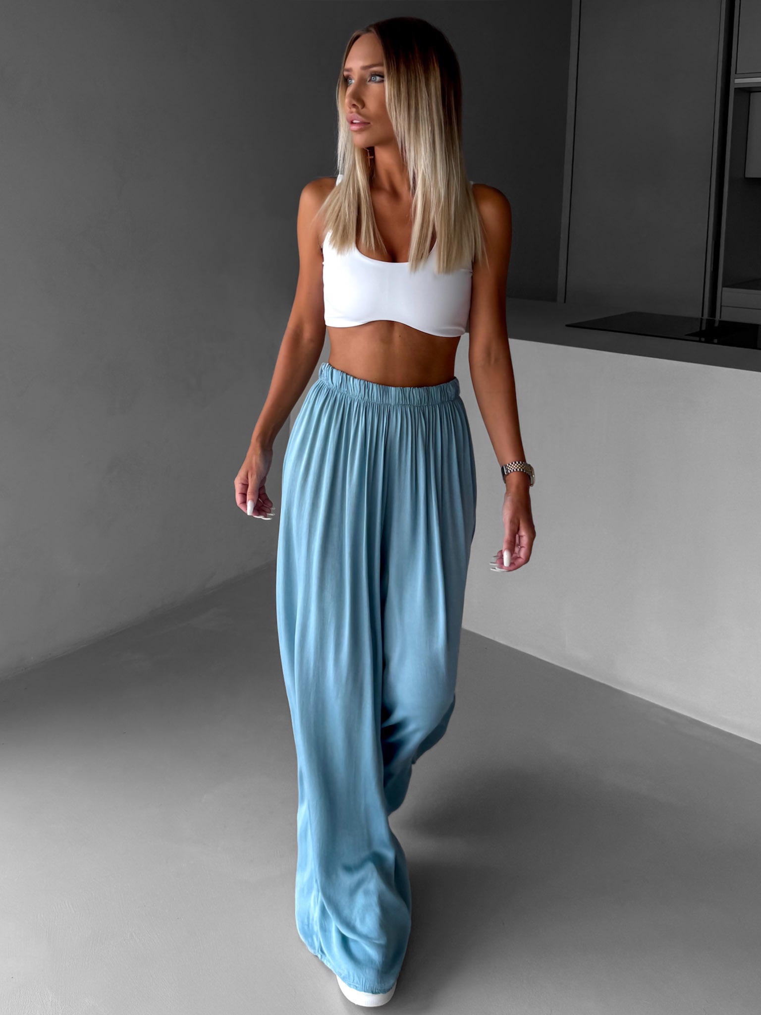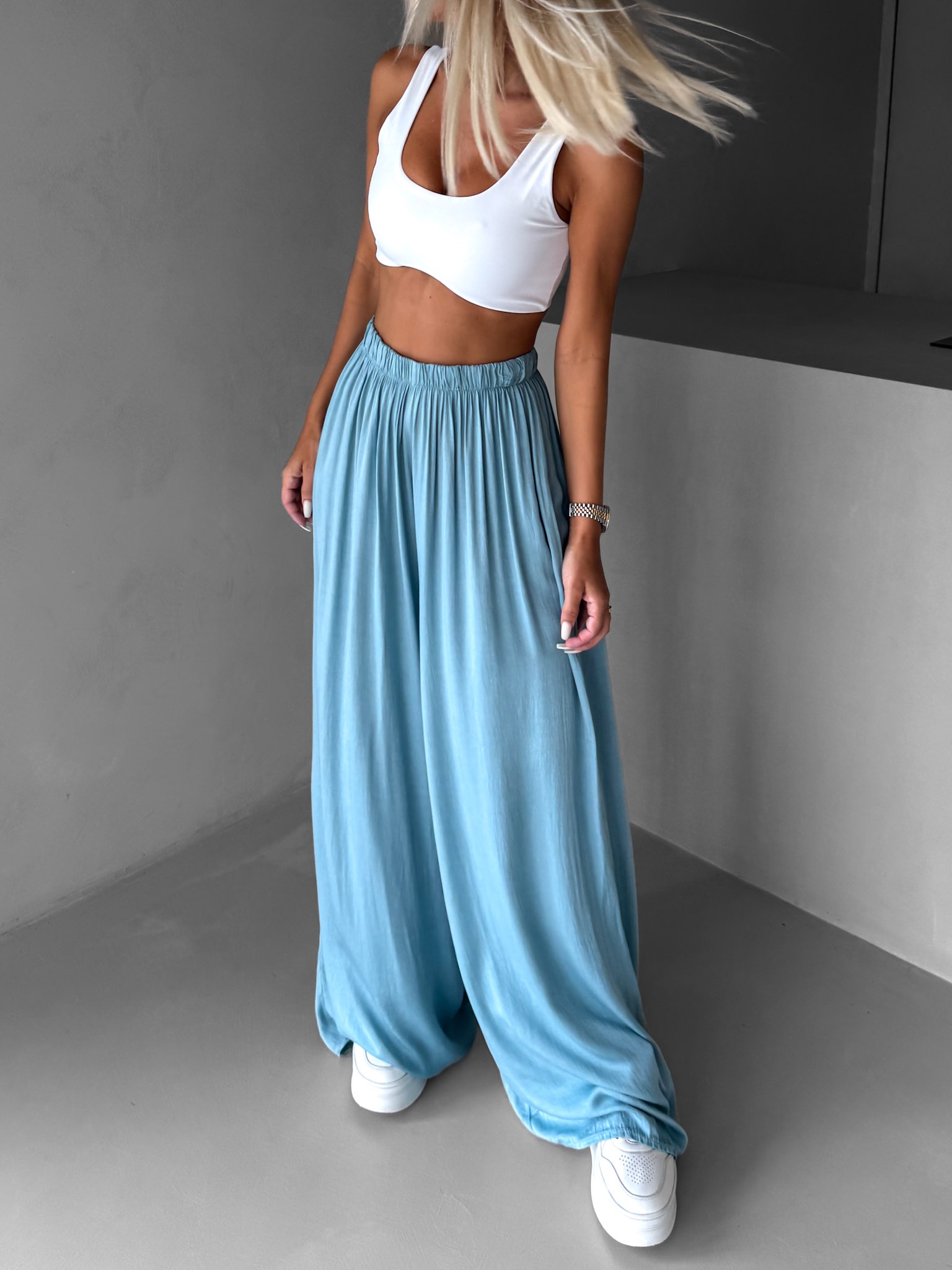 Tyrkysové široké volné dlouhé kalhoty OLVIRA Velikost: Prodloužená délka