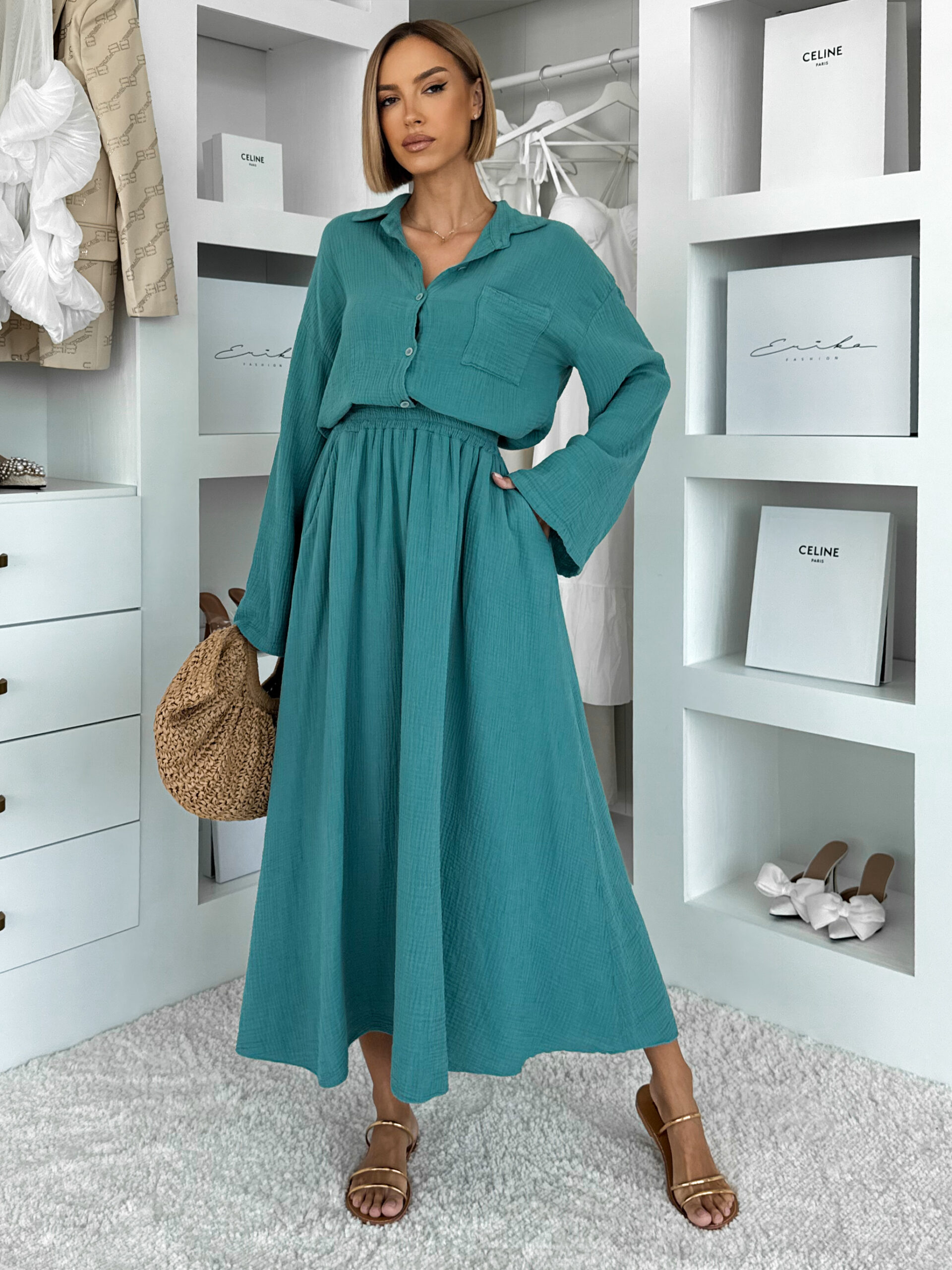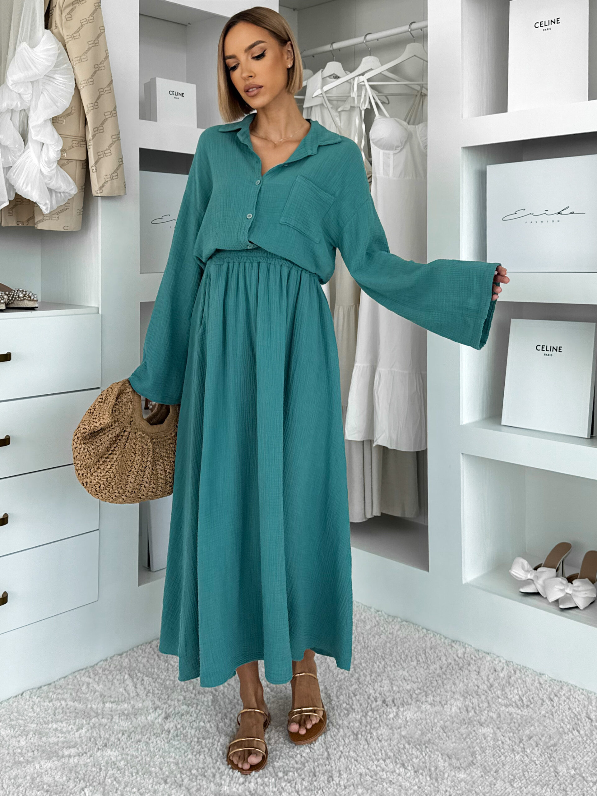 Tyrkysový mušelínový košilový komplet BELIANE se sukní Velikost: ONESIZE