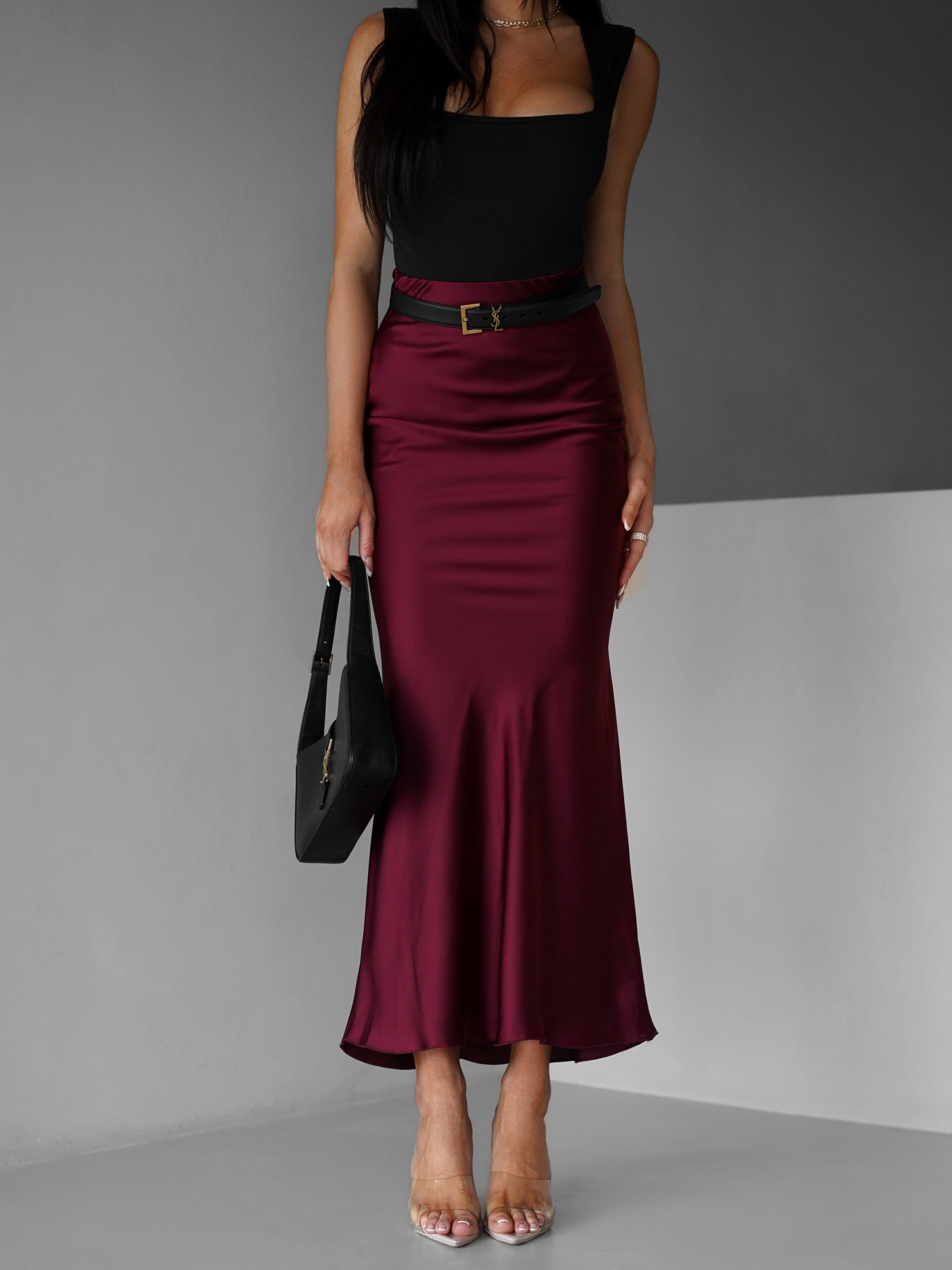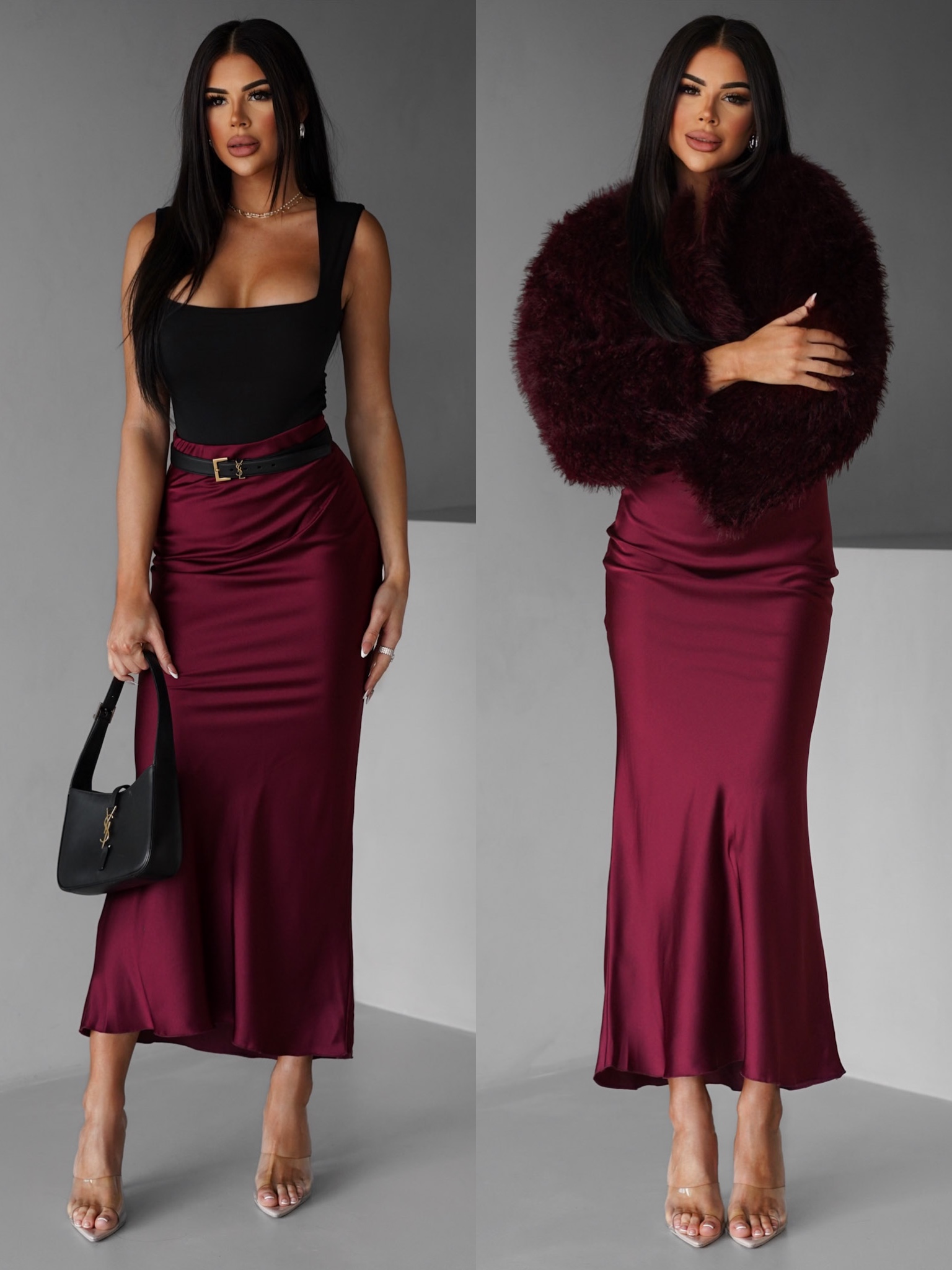 Vínová dlouhá saténová sukně REGENORY Velikost: ONESIZE