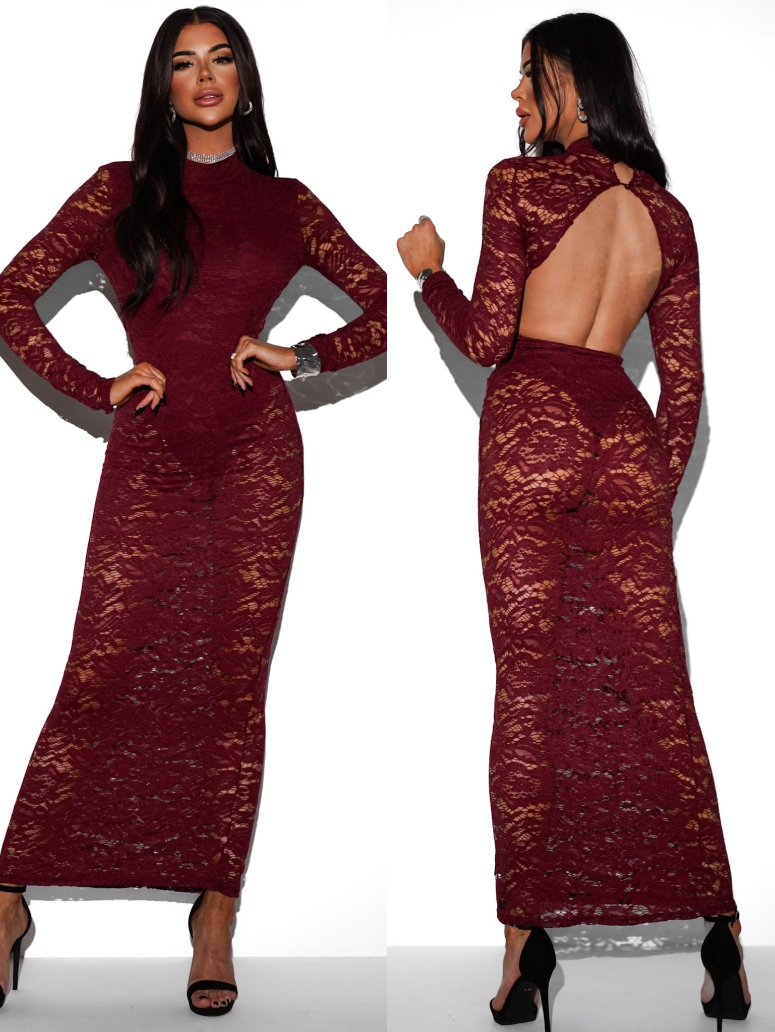 Vínové dlouhé večerní krajkované šaty DUARTY s body Velikost: ONESIZE