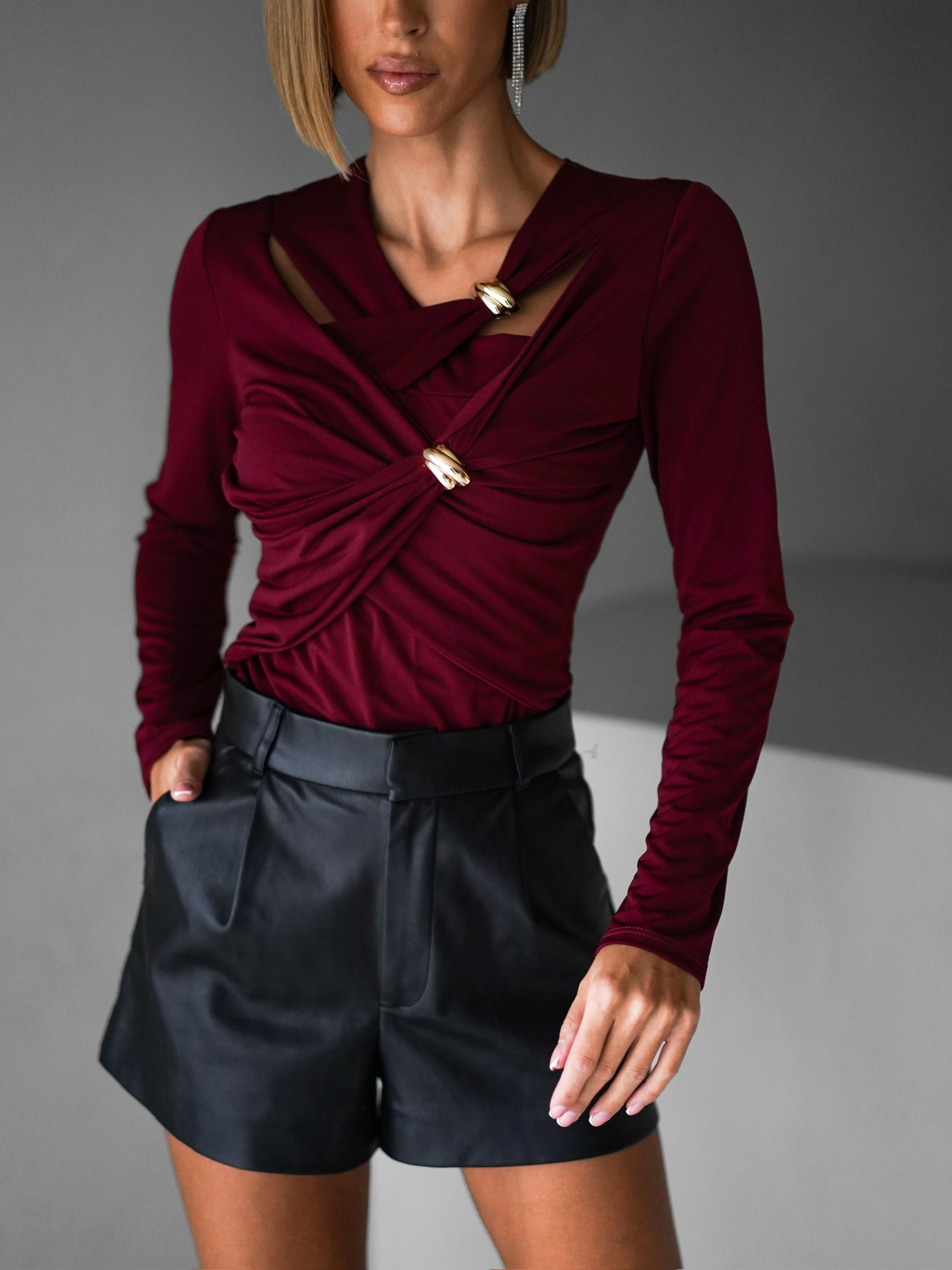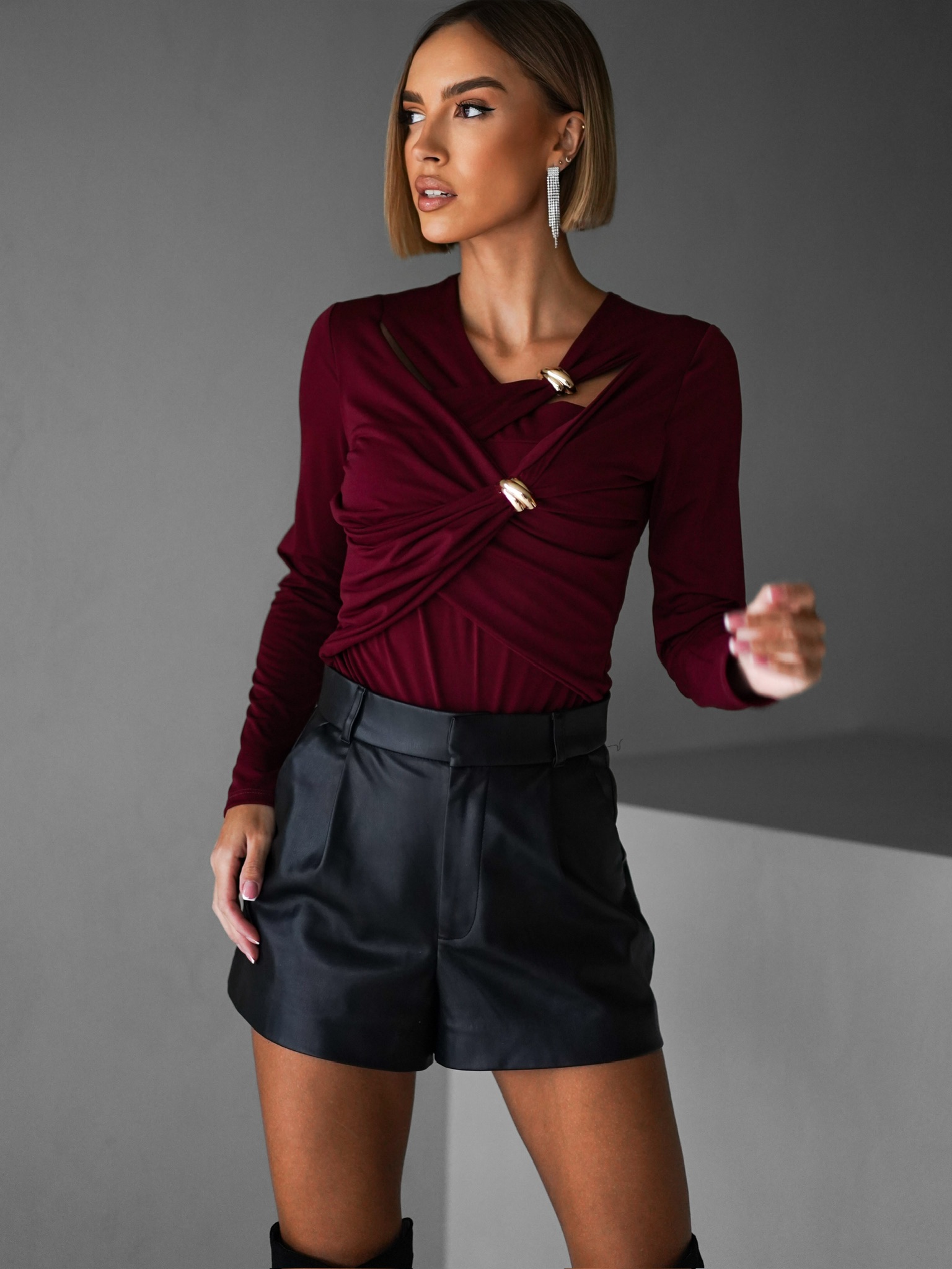 Vínové elegantní triko ODETA s průstřihy Velikost: ONESIZE