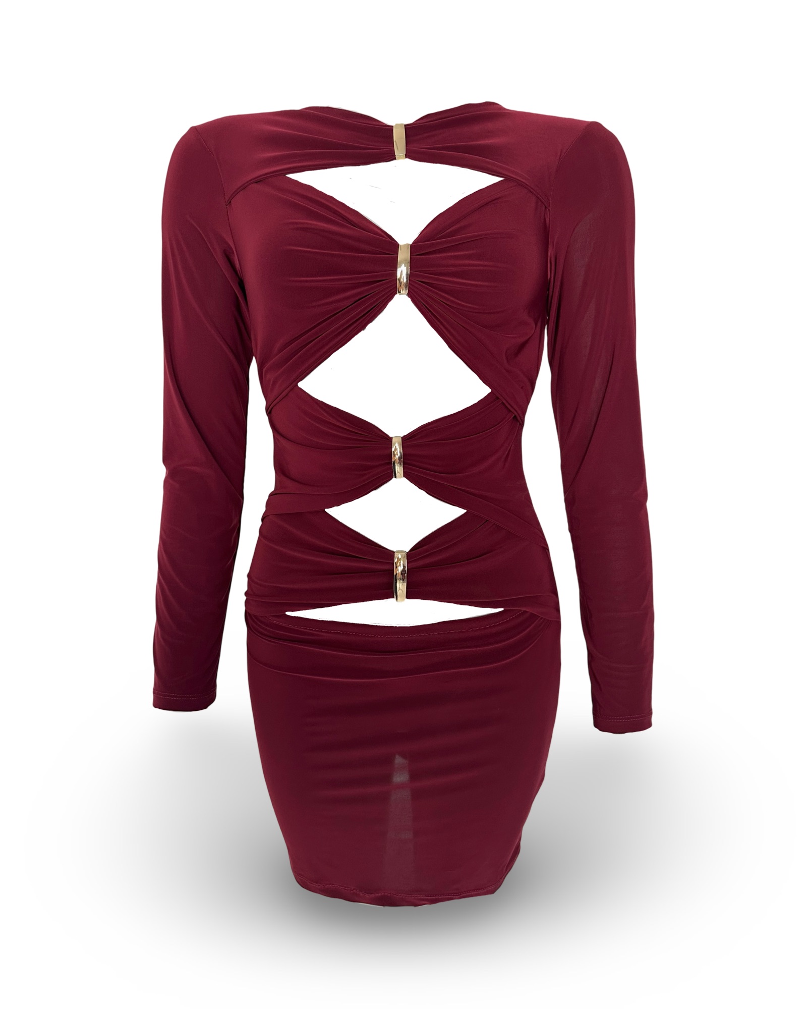Vínové koktejlové šaty FINLAY s průstřihy Velikost: ONESIZE