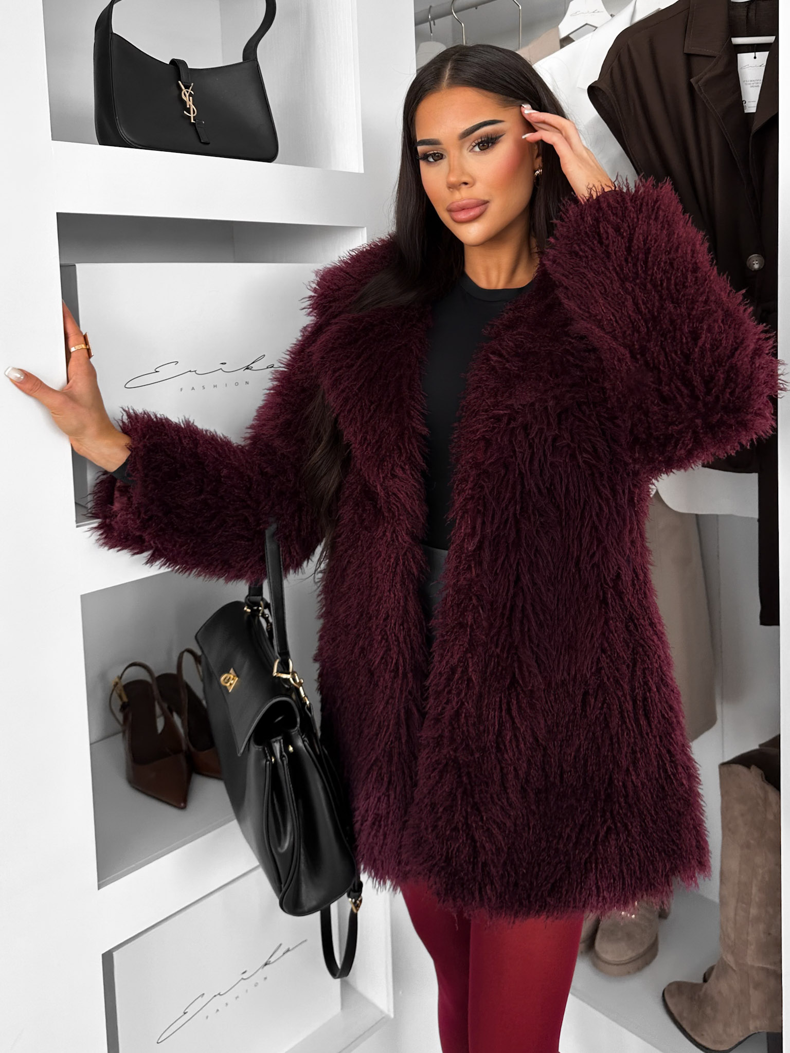 Vínový faux fur kožešinový kabátek CAMTU Velikost: S/M