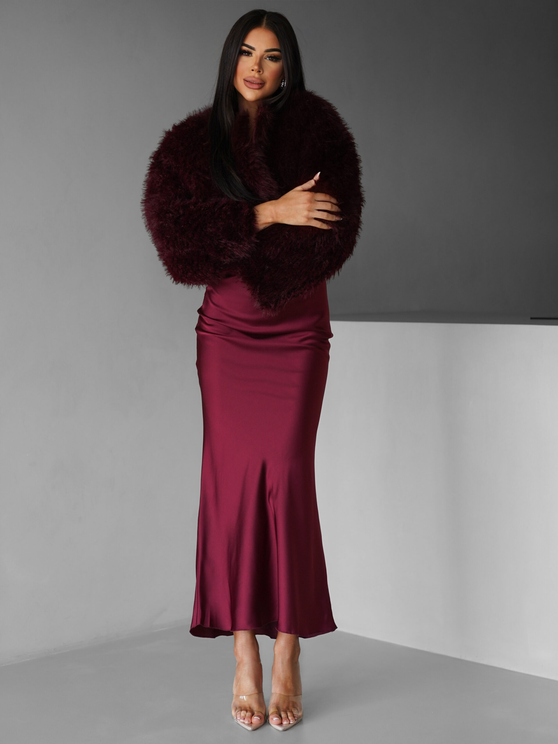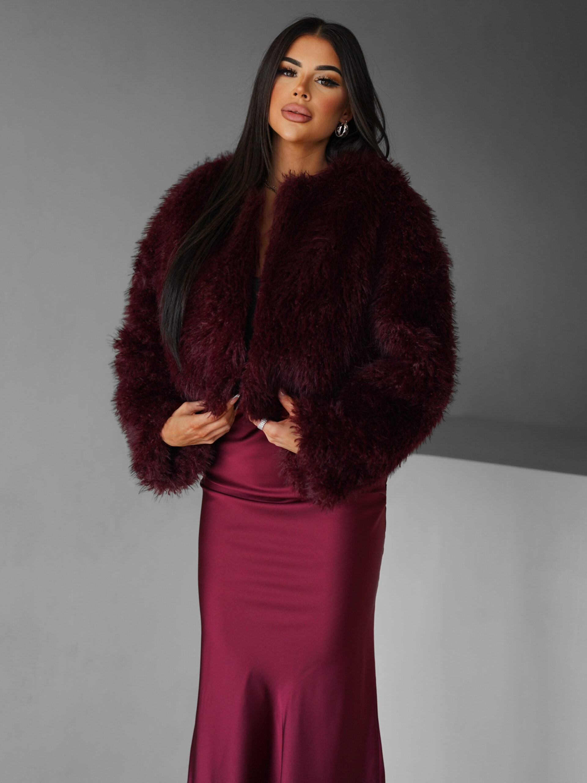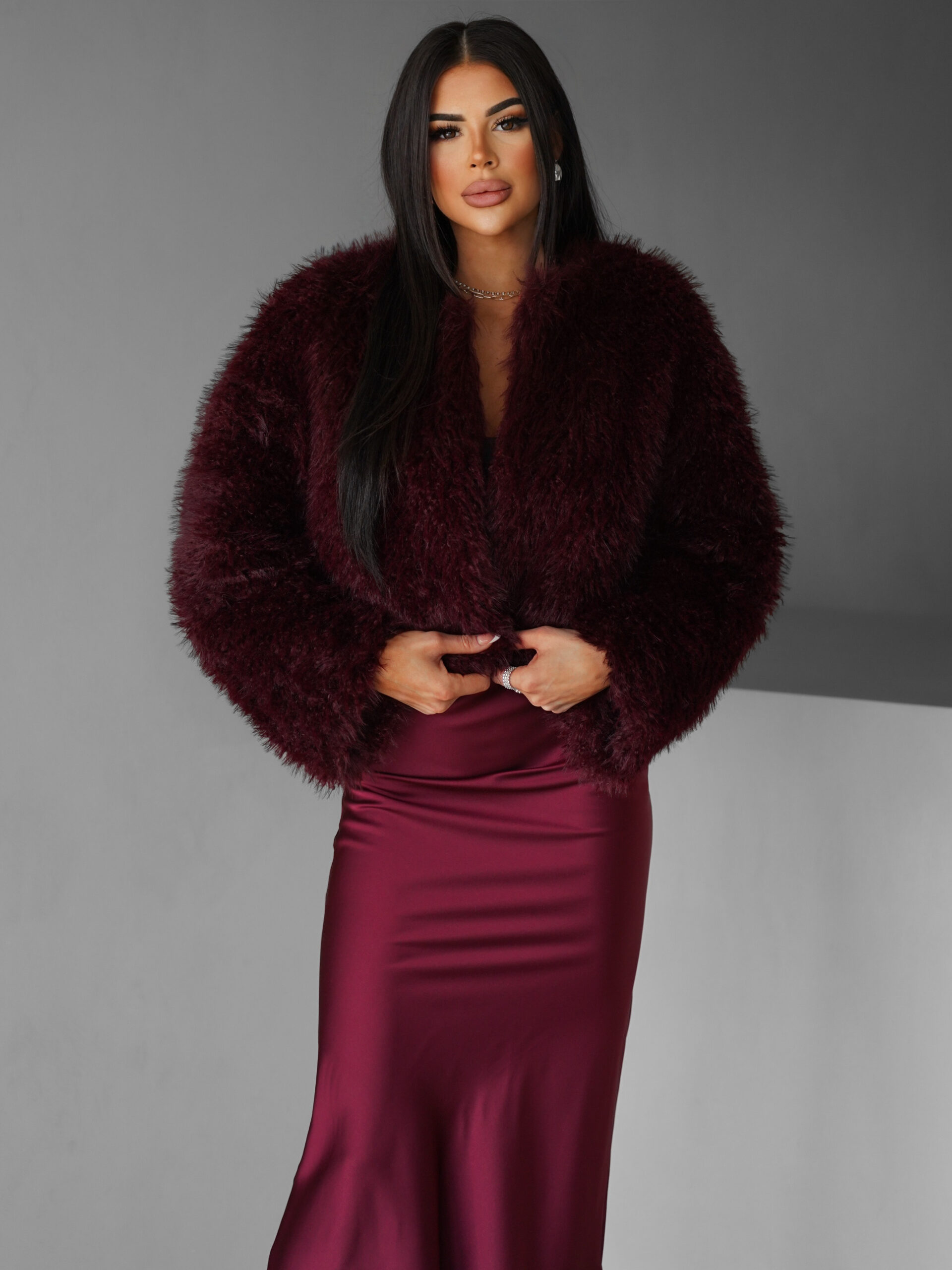Vínový faux fur krátký kožešinový kabátek KOLODA Velikost: M/L