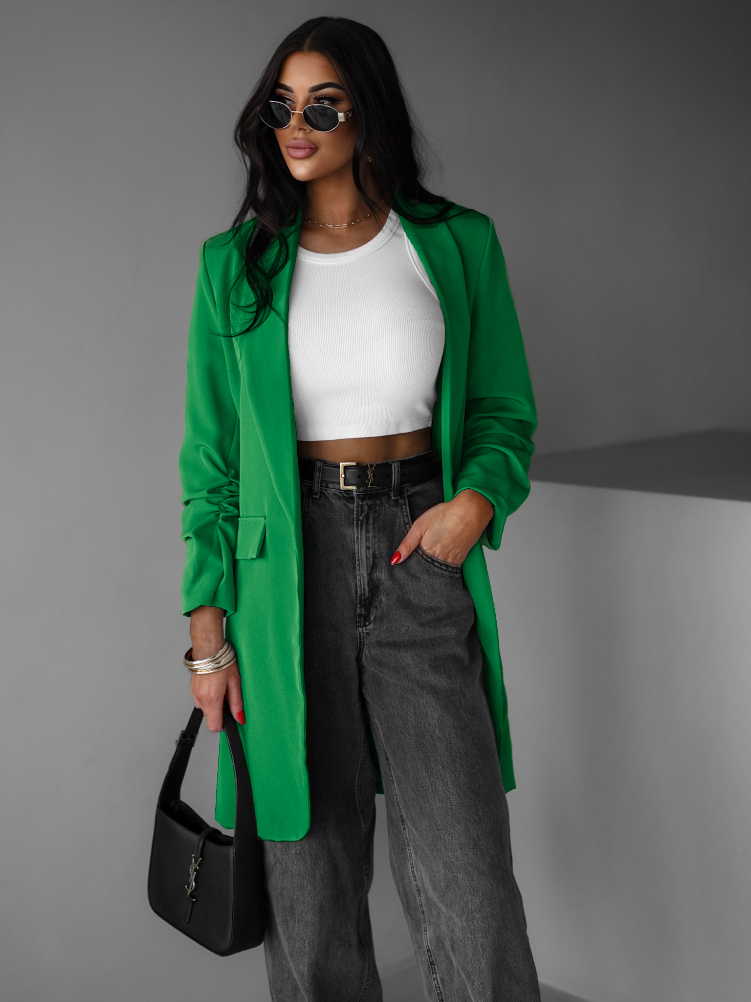 Zelené basic delší sako CASTIEL Velikost: ONESIZE