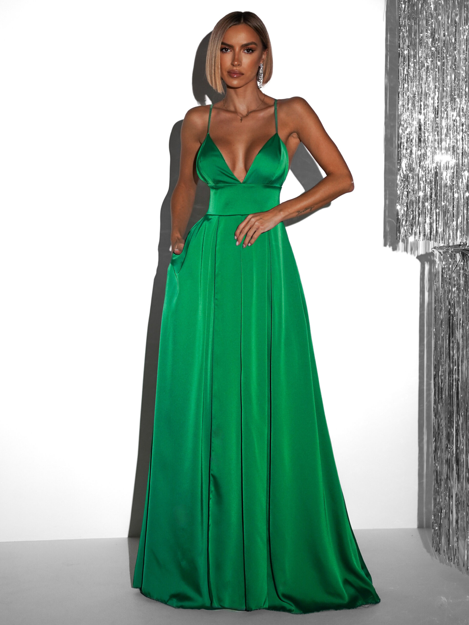 Zelené dlouhé elegantní šaty BREALYN s kapsami Velikost: ONESIZE