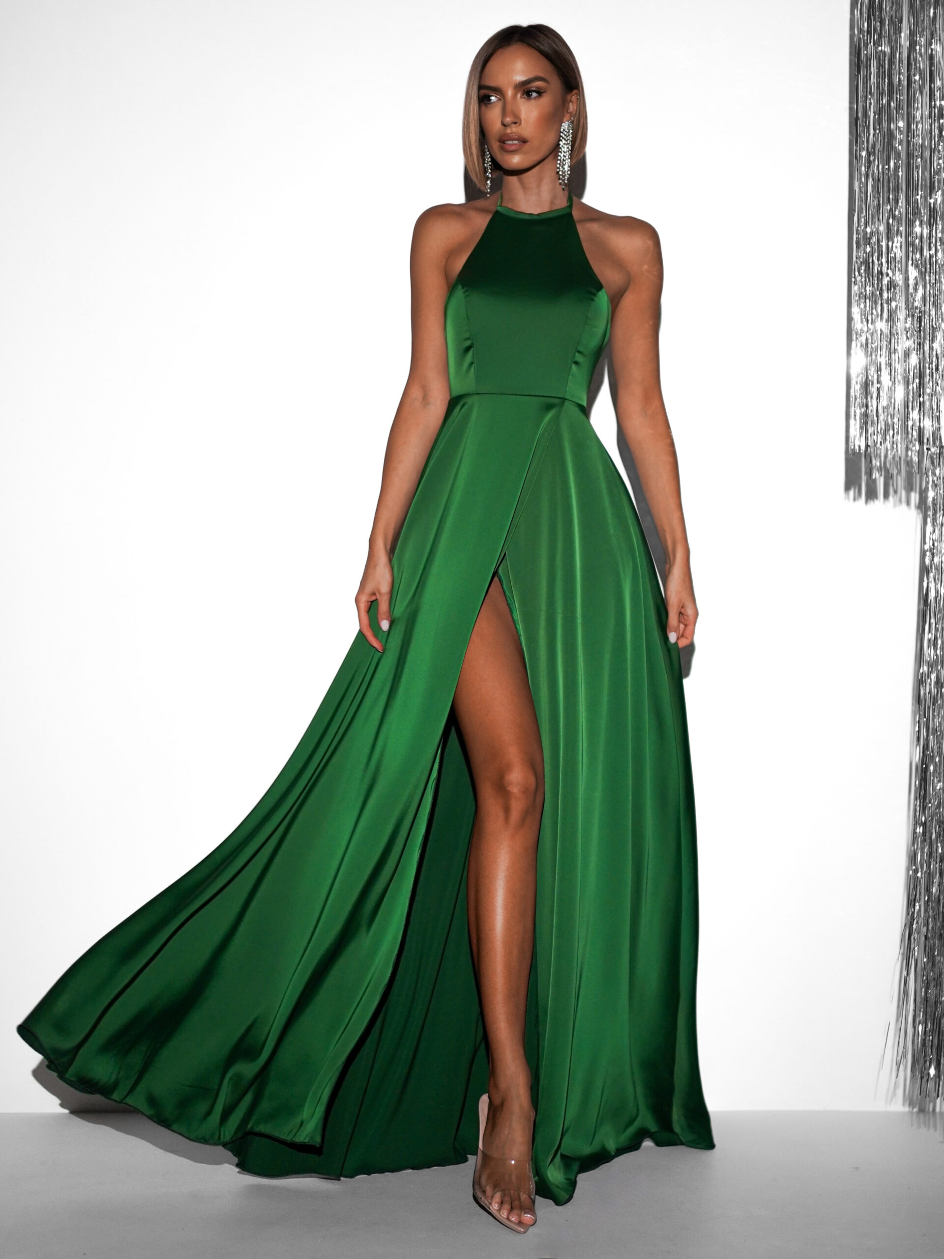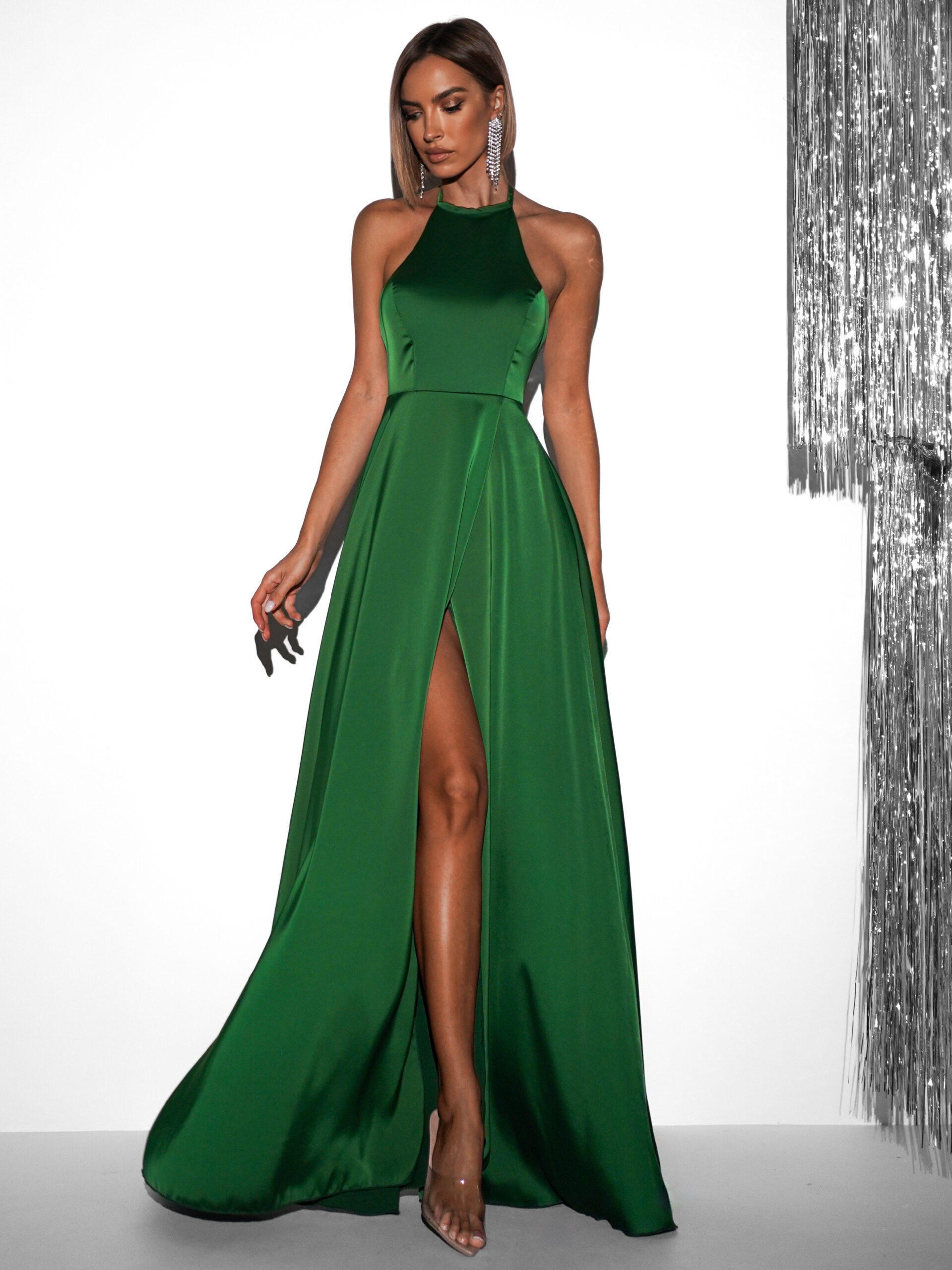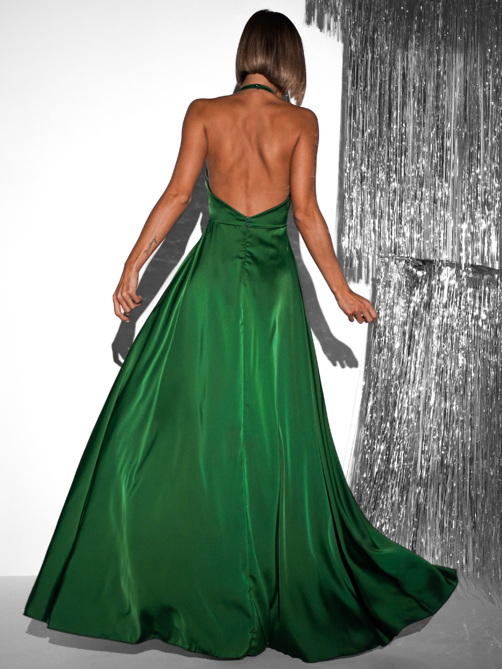 Zelené dlouhé saténové večerní šaty HAMBUR Velikost: ONESIZE