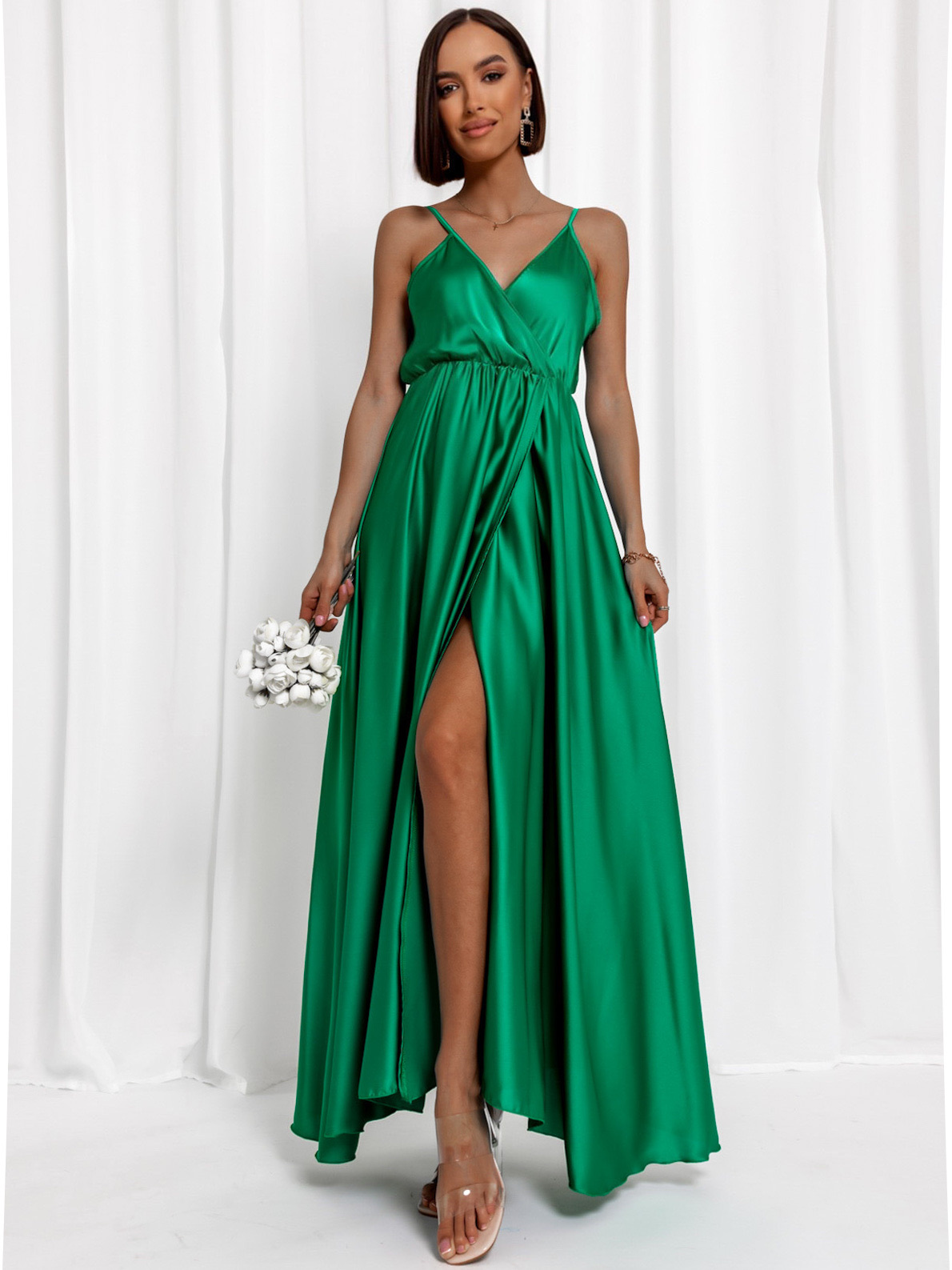 Zelené lesklé dlouhé plesové šaty CHRYSANTHE