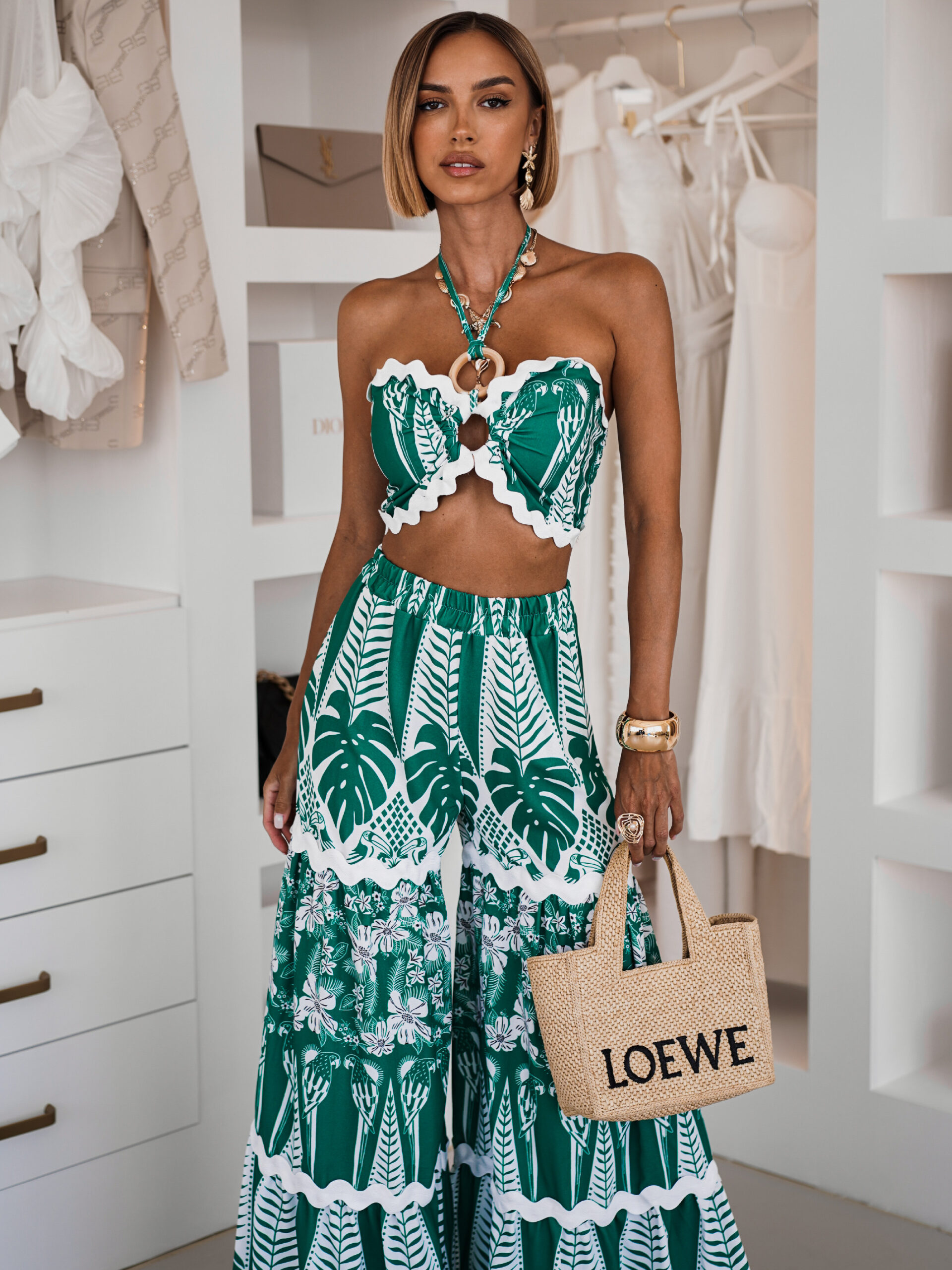 Zelený vzorovaný letní kalhotový komplet SERAPHY Velikost: ONESIZE