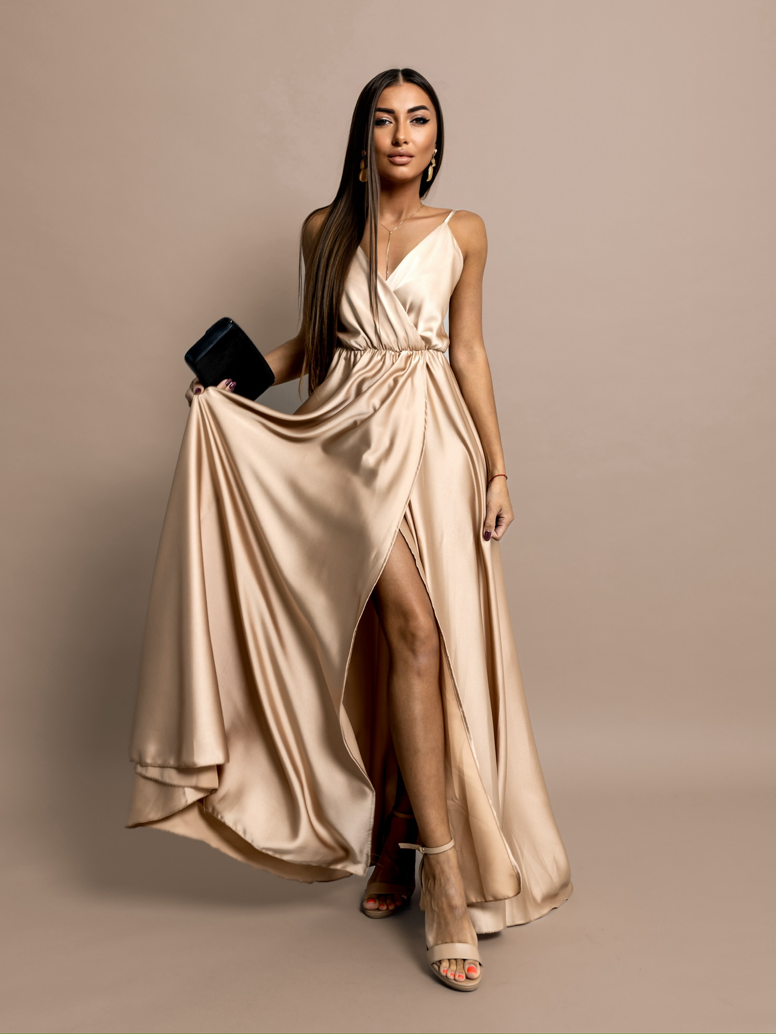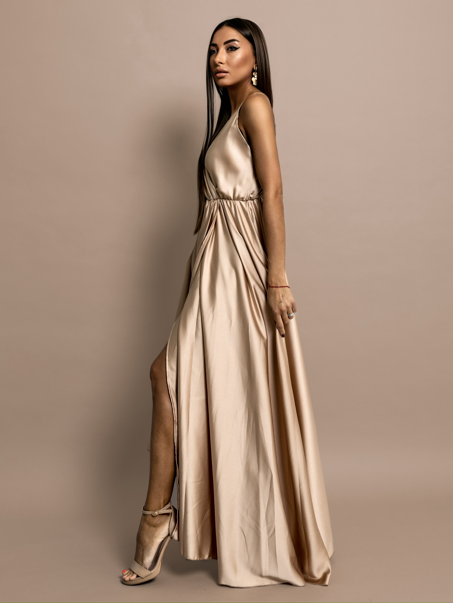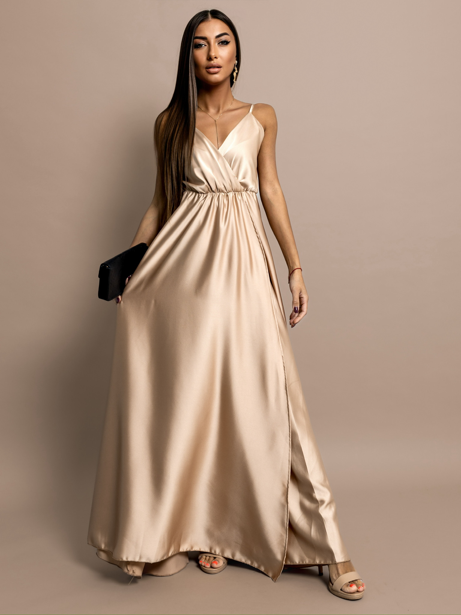 Zlaté dlouhé lesklé šaty PERFECTLY