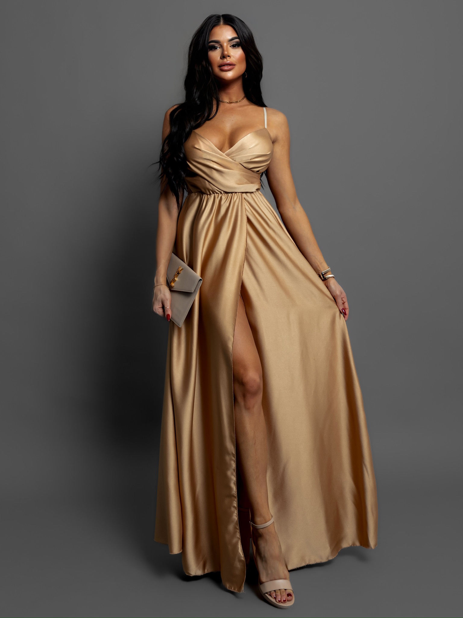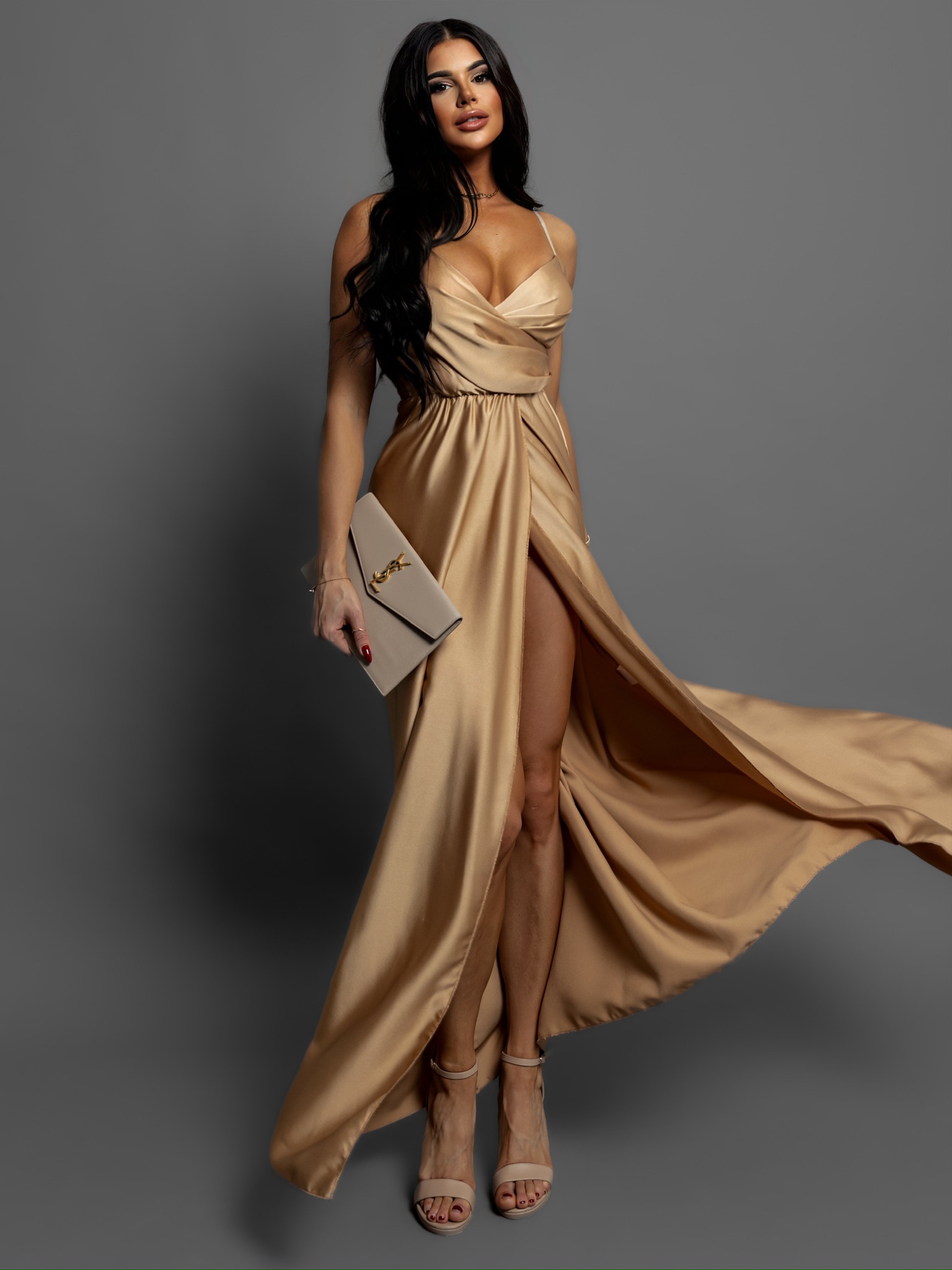 Zlaté elegantní šaty PATILLA s rozparkem Velikost: ONESIZE