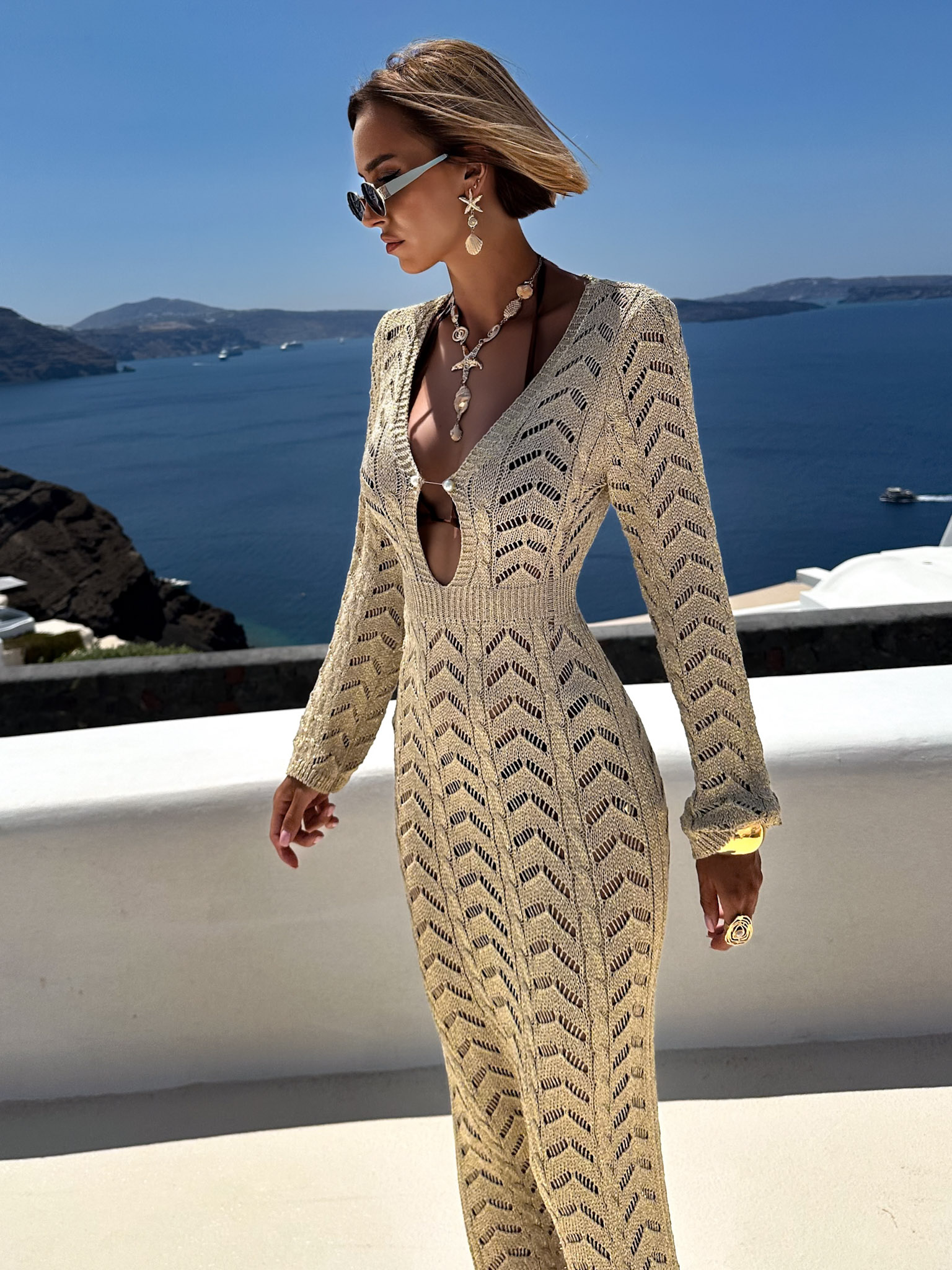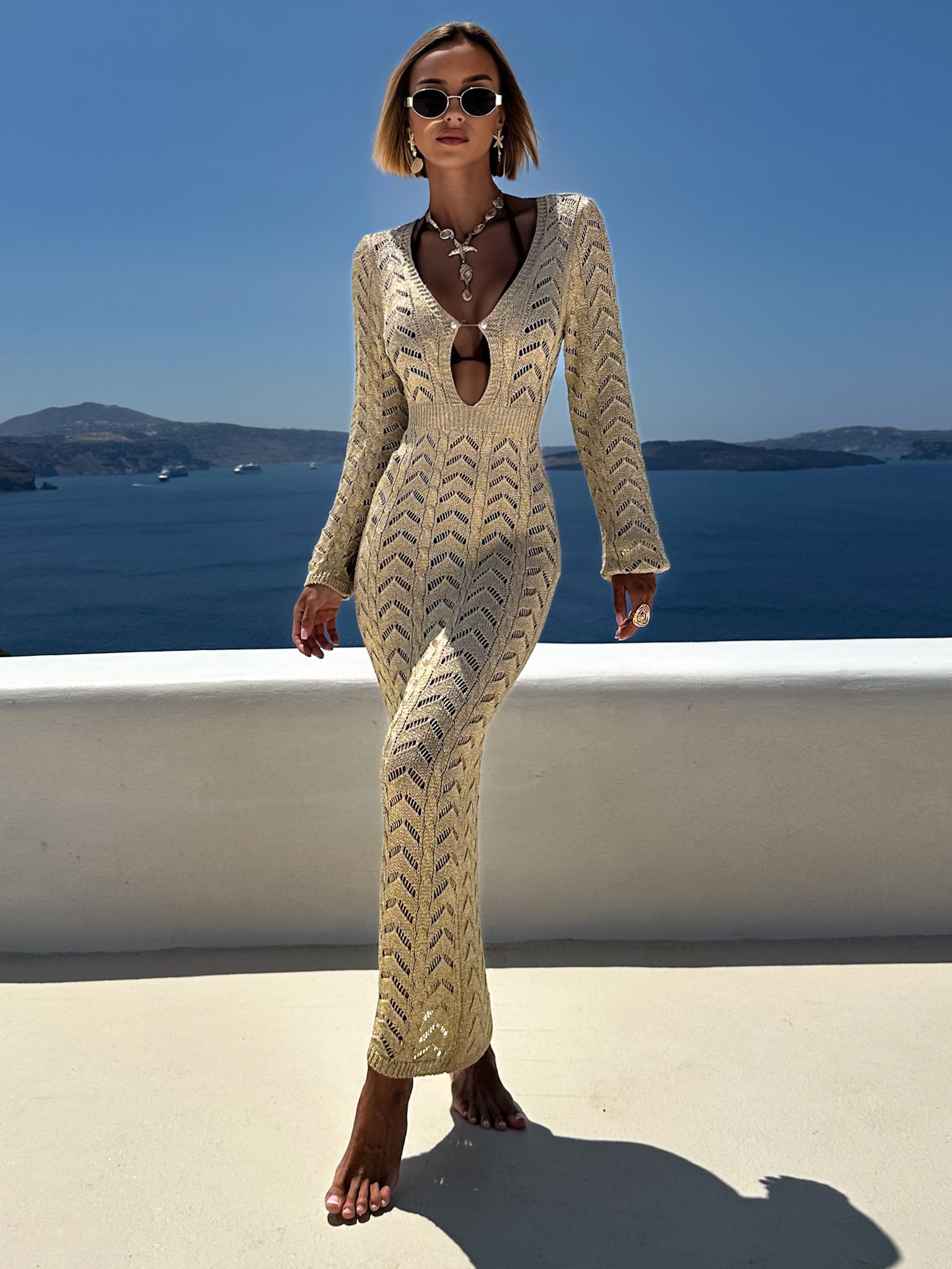 Zlaté letní dlouhé šaty MEGGIE s odhalenými zády Velikost: ONESIZE