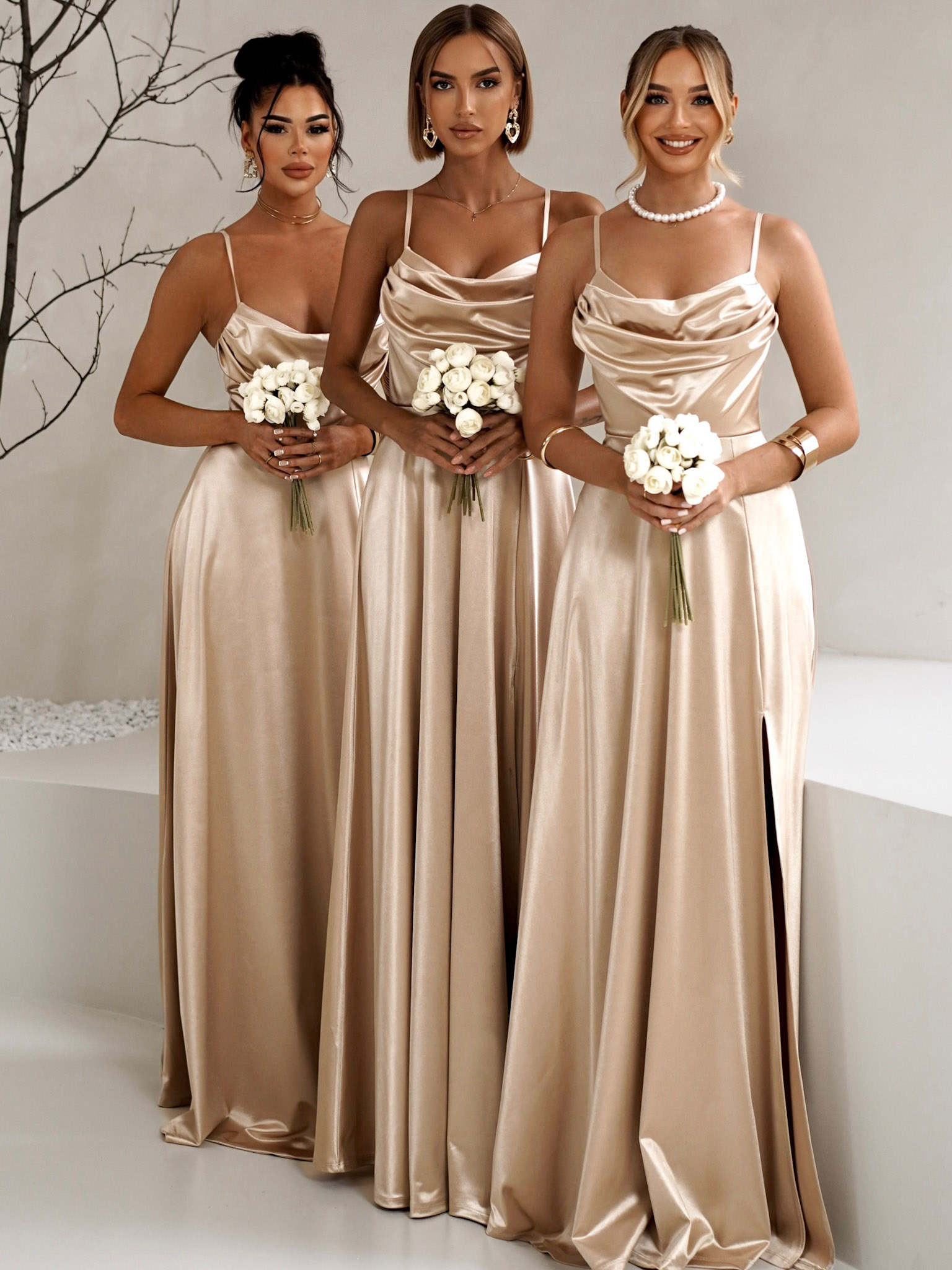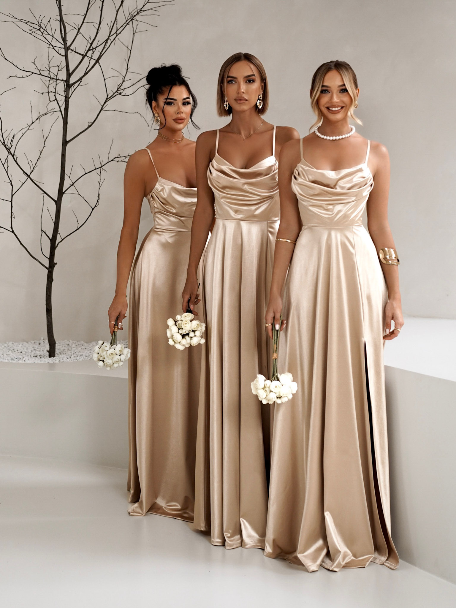 Zlaté saténové korzetové šaty BONKA pro družičky Velikost: ONESIZE