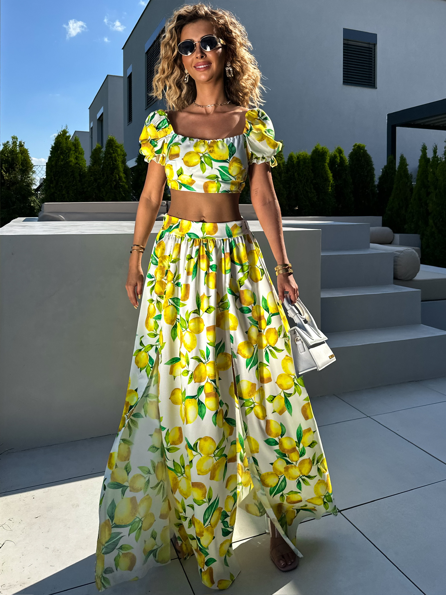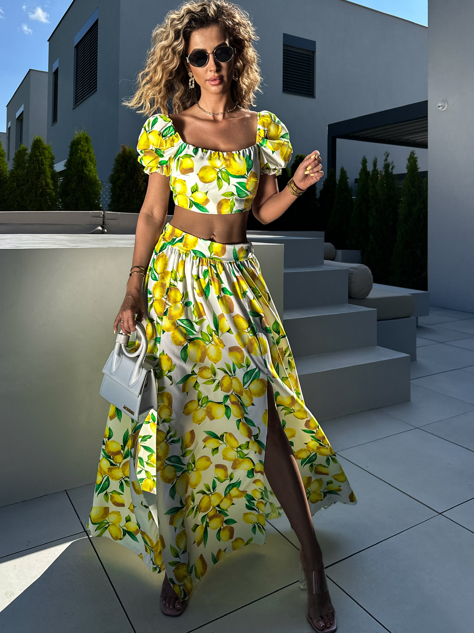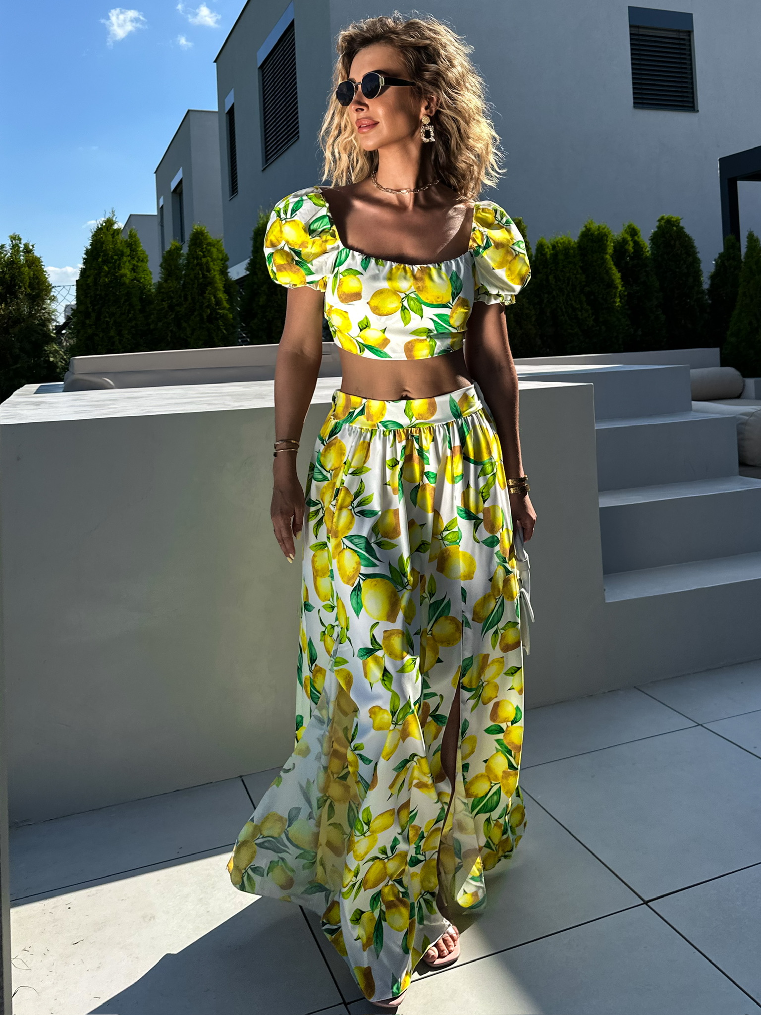 Žlutý komplet se sukní a topem TOMILA s citróny Velikost: ONESIZE